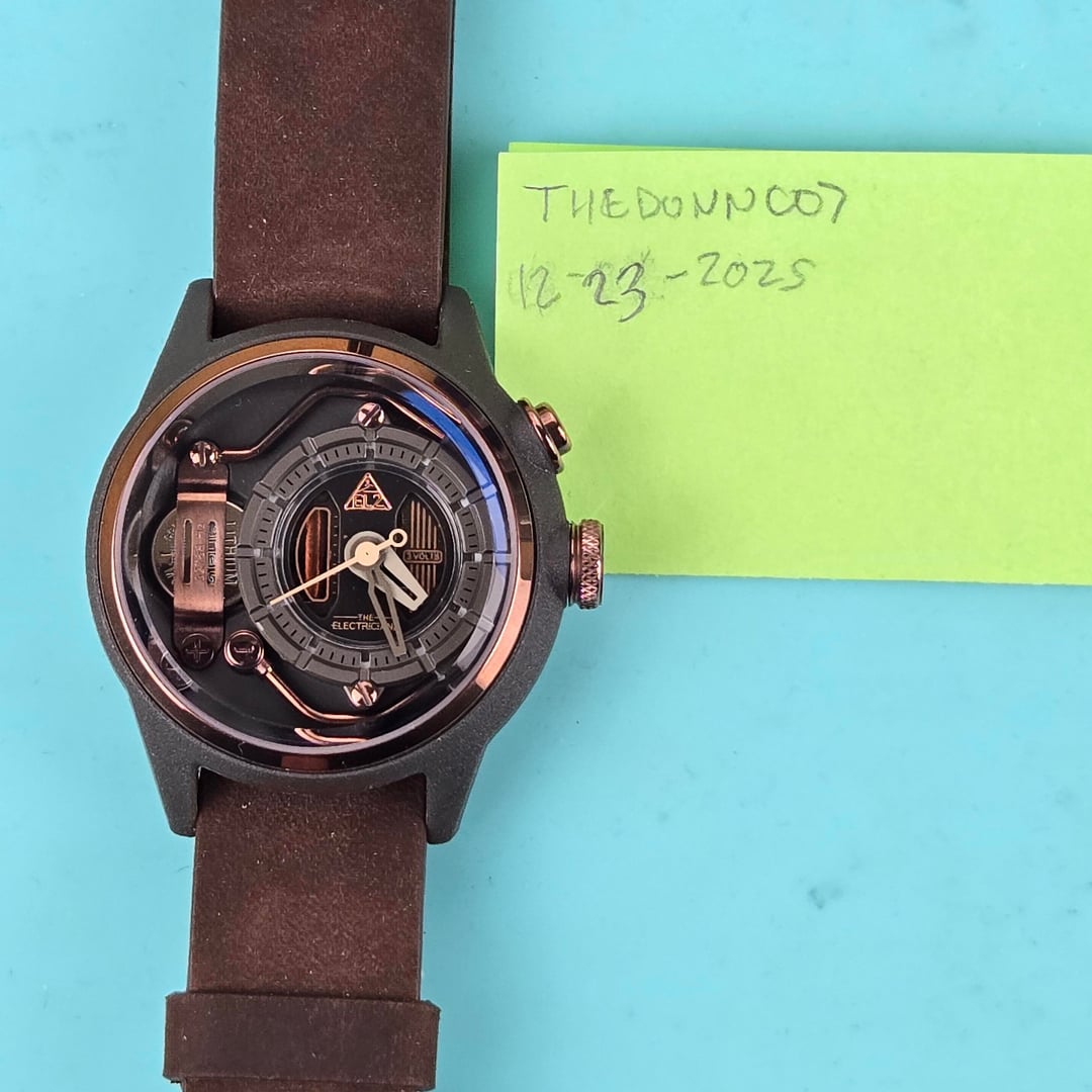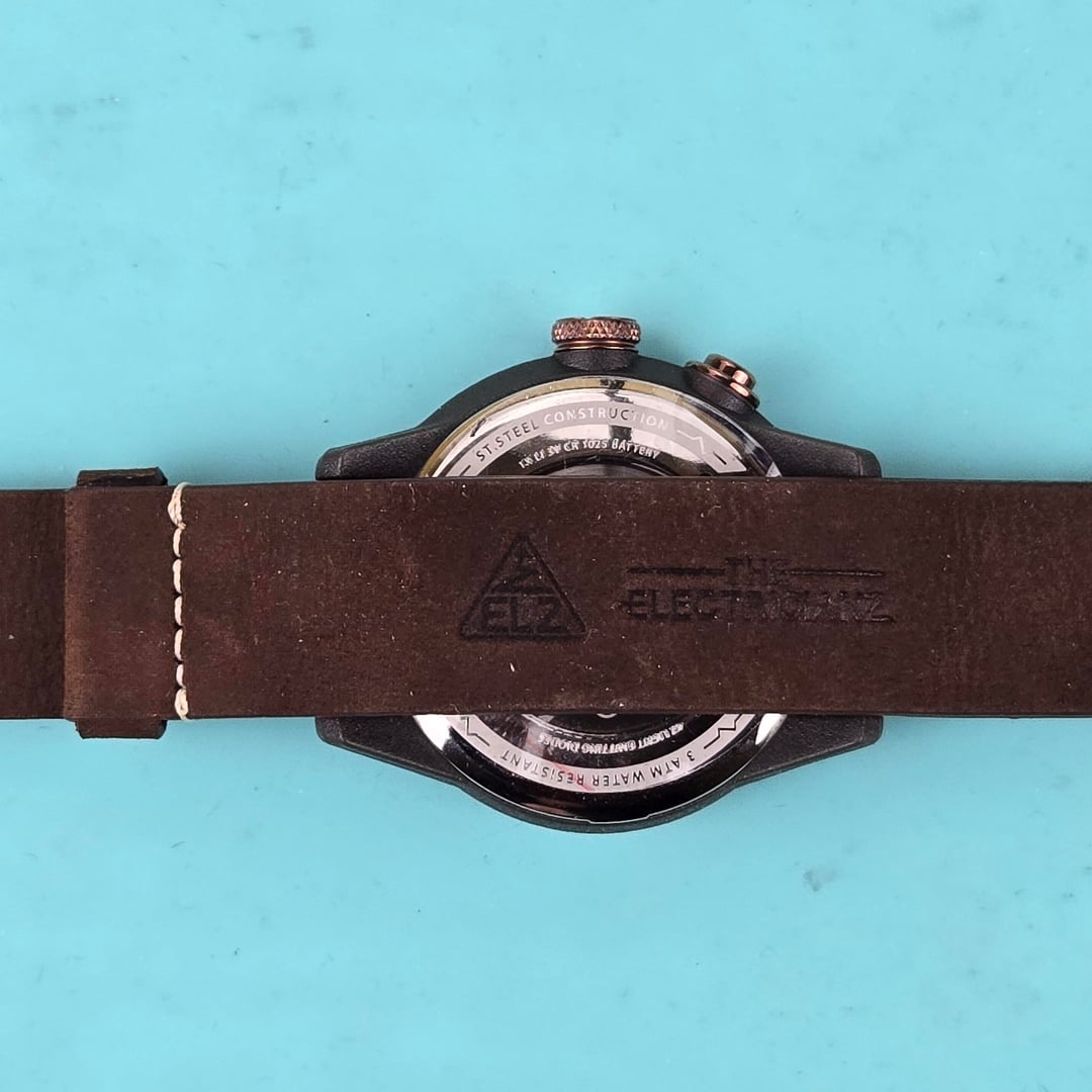 \[WTS\] Electricianz Moka Z 42mm electric module movement, leather one piece strap. SS case with Nylon outer case, box included. $200 shipped CONUS. YouTube / IG = Wrong Time Watch