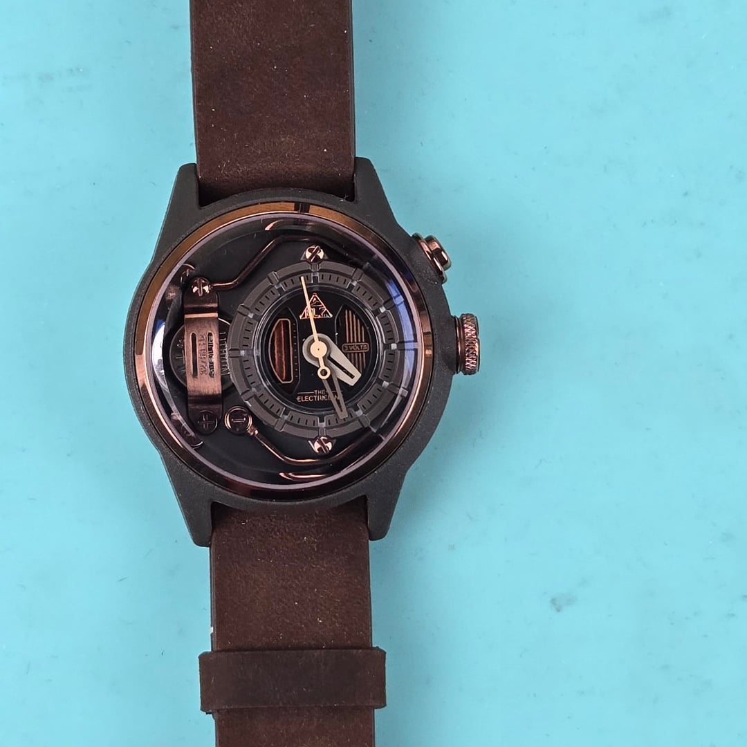 [WTS] Electricianz Moka Z 42mm electric module movement, leather one piece strap. SS case with Nylon outer case, box included. $200 shipped CONUS.