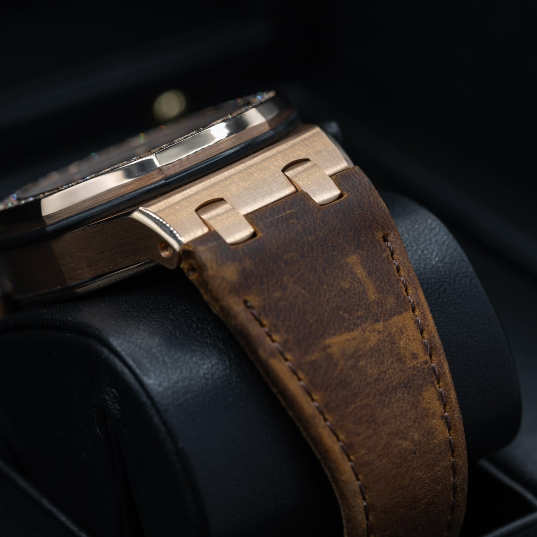 For sale here is a very cool 42mm AP Royal Oak Offshore in solid 18k gold, with diamonds added to the bezel. Ref. 25940OK. This one started out its life as a “Rubberclad” bezel, but has since been upgraded with a larger 18k rose gold bezel set with natural diamonds! Shown mounted on a thick leather strap, and comes with the original black AP strap as well as a white Horus strap. . Comes with the box and blank warranty booklet. Asking price is $27,950. **All watches sold by us come with a 1 year warranty on movement, case, and bracelet functionality.** We have been trading luxury timepieces since 2017 and operate out of the southeast United States. Accepted forms of payment are wire transfer, trades for other watches, or crypto +2%. Turn your digital coins and memes to IRL assets! After payment has been received, we ship out promptly using Fedex Priority Overnight, fully covered by a private insurance company. Packages are sent to a Fedex Office or Ship Center to be held for pickup. Armored carrier or personal delivery will be arranged for pieces valued over $150k. More pictures or video available on request! Plenty of references available, so deal with confidence! We pride ourselves on customer service, communication, and will do what you need to make this a comfortable transaction. Most brands and models of luxury timepiece are accepted on trade. Rolex, Audemars Piguet, Patek Phillipe, Richard Mille, Hublot, Panerai, Zenith, Breitling, Vacheron Constantin, F/P. Journe, A. Lange & Sohne, etc. I can do cash either way or multi-watch trades for the right deal! Check out our other listings on mechanical-art . com