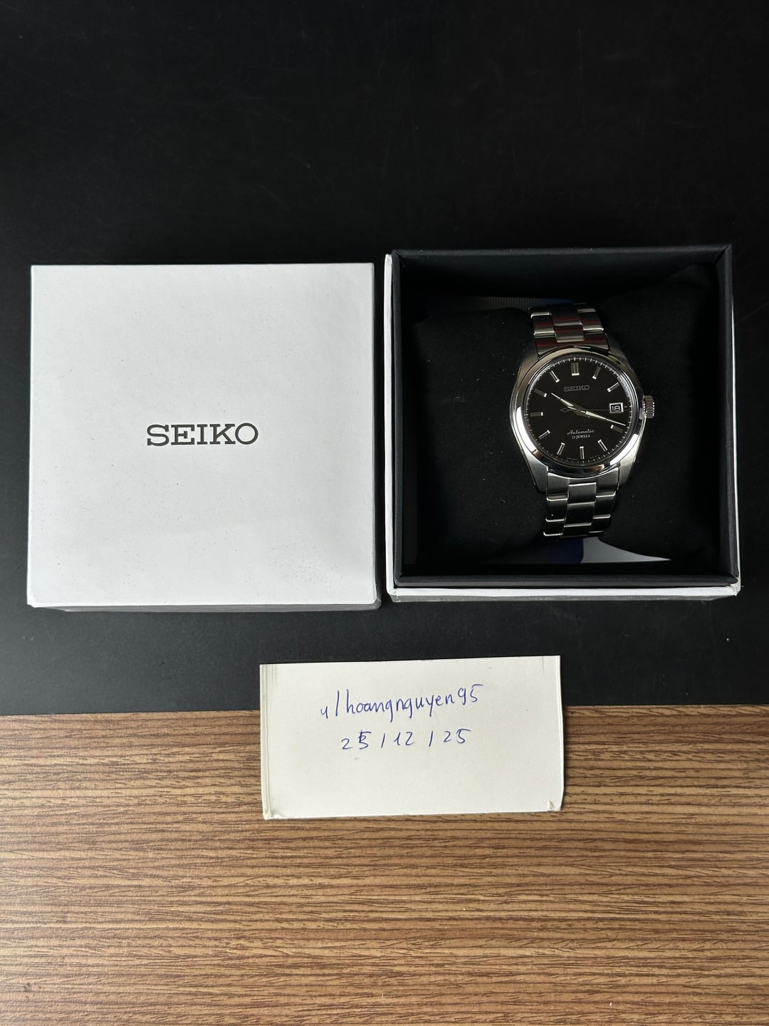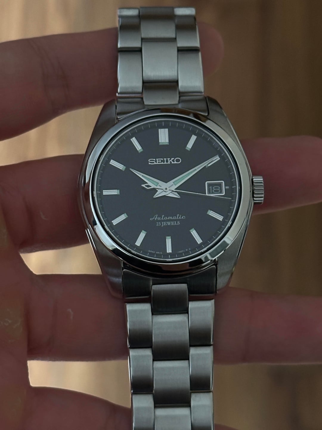 Up for sale is the Seiko Sarb033 aka “Baby Grand Seiko” in excellent condition. Images: https://drive.google.com/drive/folders/1cxLYoDddkrg_Fvh_iccxzv0VqlppWckk Video: https://drive.google.com/file/d/1-53PEkc0g3ue-y5R4gypgQBkYUYRMxG0/view?usp=drivesdk Timestamp: https://drive.google.com/file/d/1jNmLV3E0XiCwojAZ3HpsamfP0CXoX4Px/view?usp=drivesdk The Seiko SARB033 (black dial) was originally released in 2008, alongside siblings, 035 (cream dial), 037 (salmon dial) and 038 (Gold pvd). It was immediately met with rave reviews due to its superb design and an excellent value proposition. It was discontinued in 2018, and since then the price has gone up due to its collectible status. Introduced in 2007, the SARB033 features a 38mm stainless steel case with a 44.5mm lug-to-lug length, thickness of 11.5mm and 20mm lug width. Inside, the watch houses the reliable 6R15 automatic movement, delivering solid performance. It’s water-resistant up to 100 meters, protected by a Sapphire crystal and a display case back. The dial sports a black finish, complemented by refined dauphine hands and applied index markers. This watch is in great condition, showing little scratches. Dial and crystal are clean, however hands can see mark at the tail of the minute hand. It has been recently serviced and is running accurately. The original bracelet remains firm and fits wrists up to 20cm (8 inches). It comes with Seiko box, booklet and card Price: $625 + $60 flat shipping (via DHL/UPS express which includes duty imports/tariffs fee). Payment via PayPal F&F or G&S (+4.6% fee covered by the buyer). Not accepting trades. Feel free to message me with any questions or if you're interested. Have a great day!