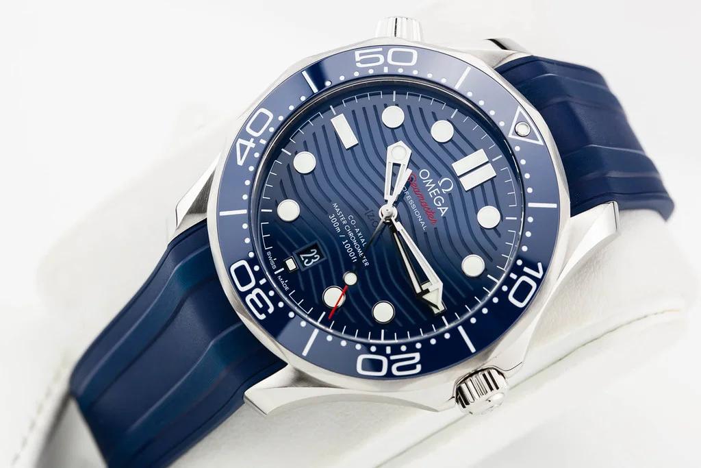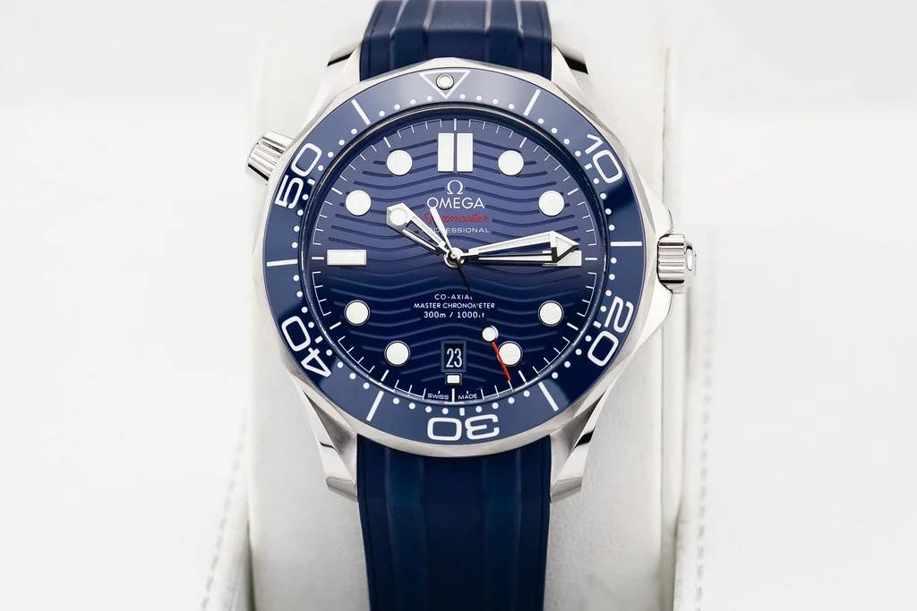 Up for sale is a brand new Omega Seamaster 300 Blue Wave Dial on Rubber Strap, reference # 210.32.42.20.03.001. It comes complete with all boxes, papers, booklets, hang tag and Omega Warranty Card dated February 2025.