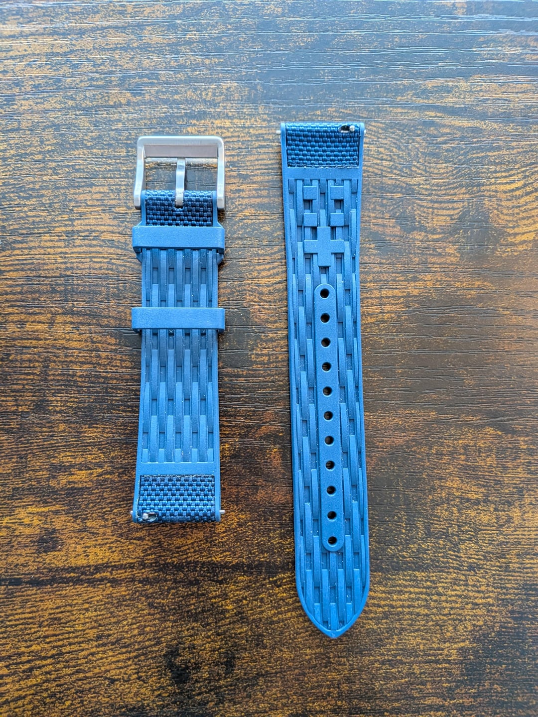 For Sale: **Christopher Ward 20mm Blue Hybrid Rubber Strap $50** SKU: 20-HYB-01-SXB-DC-ST 316L Steel Clasp **$50** Shipped (CONUS). Ships from Texas. International Shipping on your label. Glad to do a FaceTime/video call or provide more photos if needed. Accept Zelle, Venmo, PayPal (Buyer pays fees).