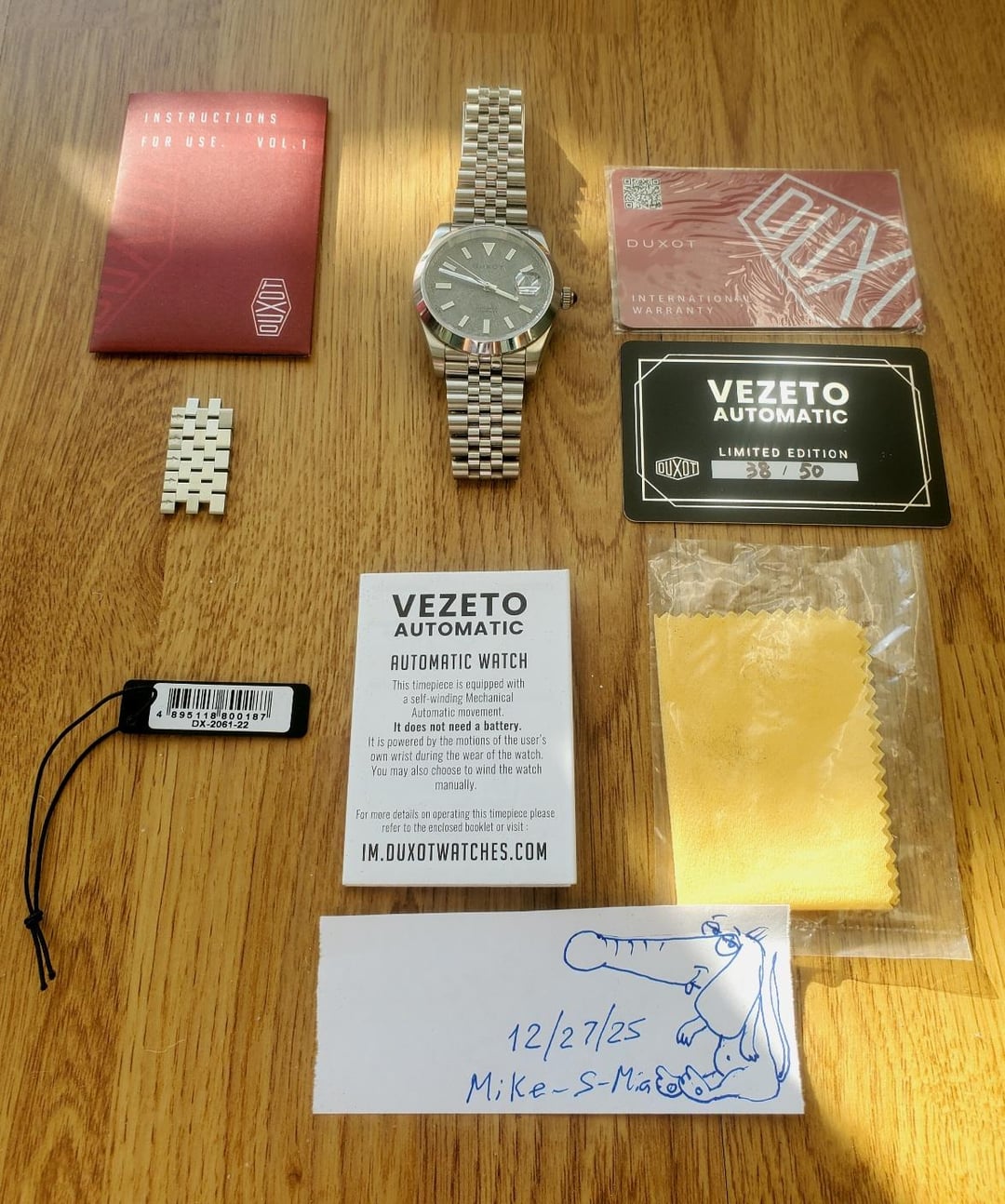 **Watch**: Duxot Vezeto Meteorite dial Limited edition of 50 **Included**: All boxes and packaging, books, cards, hang tag, extra bracelet links **Condition**: Excellent. don't see any scratches or marks on the watch, believe it's unworn A beautiful Duxot Limited Edition Meteorite Dial. This one is # 38 of 50 total. Seiko NH35 automatic movement, nice comfortable 40mm size. **Price**: Only $200 shipped CONUS
