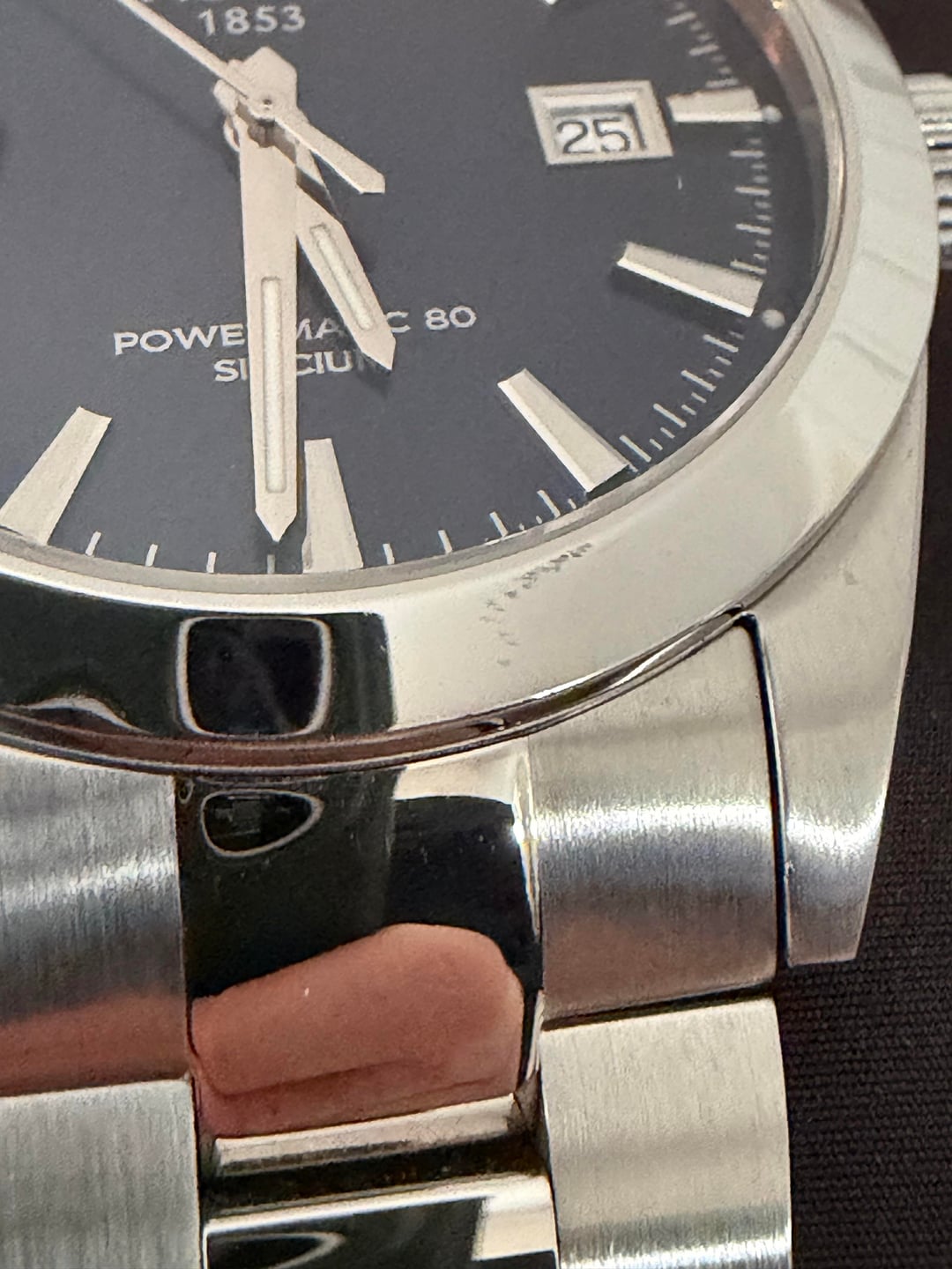 Selling my Tissot Gentleman Powermatic 80 Silicium with blue dial. Watch is in very good overall condition and runs perfectly. There is a small scratch at the bottom of the bezel (visible on close inspection and shown clearly in photos), but otherwise the case, crystal, and bracelet are in great shape. Includes full set with box, papers, bracelet, plus an additional genuine Tissot brown leather strap. $499 shipped CONUS. Payment accepted via PayPal G&S, PayPal F&F, Venmo, or Zelle. I have limited Reddit feedback but nearly 1,000 positive feedback on eBay, which I’m happy to verify.