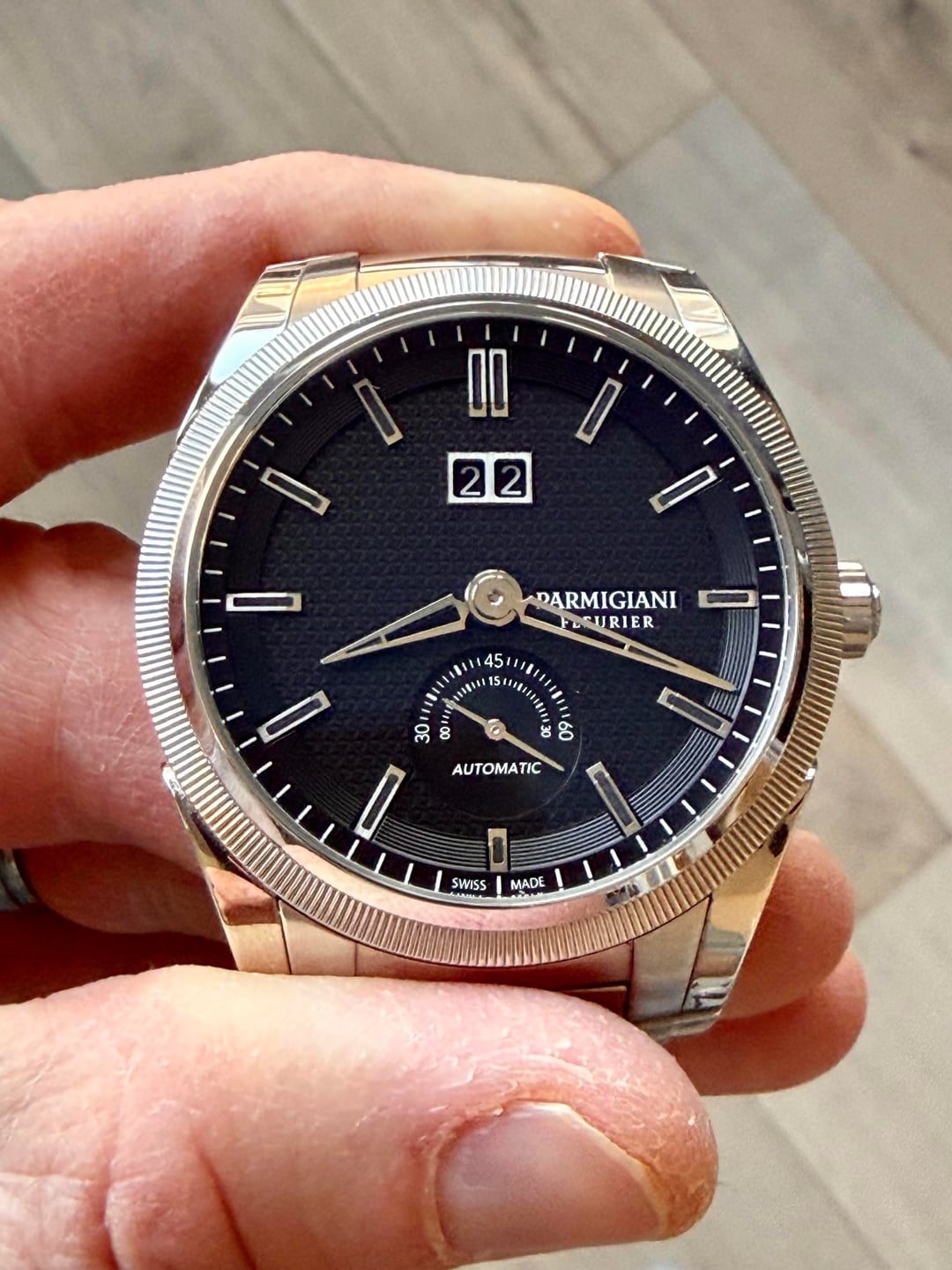 Timestamp: https://imgur.com/a/V997qLU This is a PF Tonda GT Big Date in black in beautiful condition. It’s a limited edition of 250, and helped propel PF to the rising brand that it is today! - Complete set: Inner/outer boxes, booklets, hangtag, warranty card, all bracelet links and pins - Watch is in excellent condition. - Bracelet is fit for my 6.5" wrist but all original pins and links are included. - Selling to fund additional purchases for the collection. - Free Insured FEDEX shipping to CONUS. If you want faster shipping, you can pay the difference - Offered at $10,950. Accepting PayPal G&S (buyer pays fee) or Zelle. F&F would be acceptable for those with a high amount of transactions. - Located in Colorado. - I'm comfortable doing FaceTime to show you the watch. Hit me up with any questions!