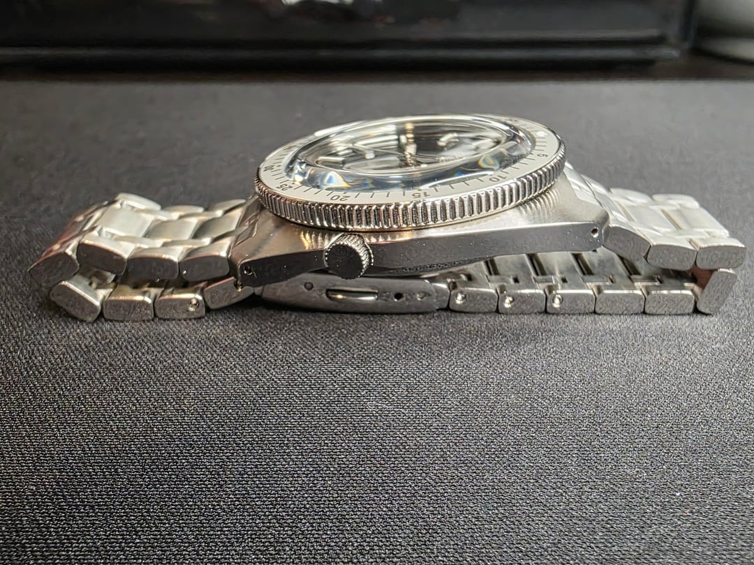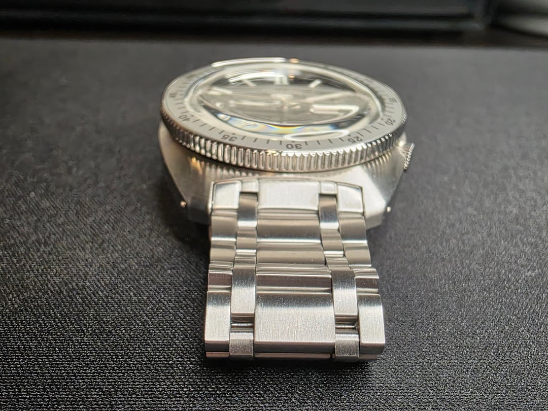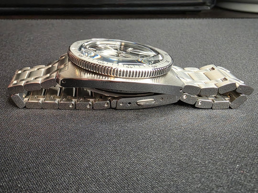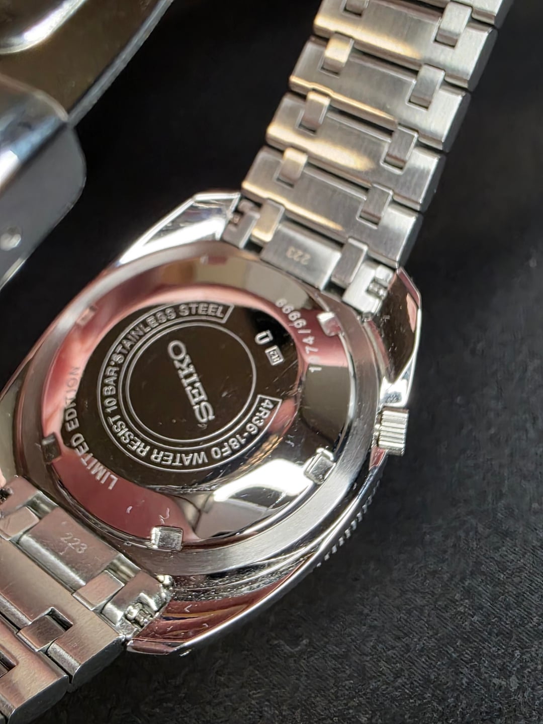 Purchased new. The dial is verv shiny, and so are the indices, which hurt my eyes, due to an astigmatism, so I am selling. The head and crystal are perfect, but the caseback has a few faint hairline scratches from strap changes, as I only ever wore this on the bracelet, twice. NOTE: I have modified this watch to be handwind only. I removed the rotor. This makes it very vintage-like. If you purchase the watch, you will get all of the original packaging, extra links to the bracelet AND the rotor. If you would like the watch to be an automatic again, let me know, and I will install the rotor back on, before shipping it to you. FYI, with the rotor removed, it does make the watch noticeably lighter, which is nice. If you choose to keep the watch handwind, it takes 60 turns of the crown before the power reserve is depleted per Seiko, you will get 35-40 hours, before needing to wind it again. This is how lve done it, and its worked perfectly. Actually, I tested this to make sure it was true and it was, but as with anv handwind watch, if youre wearing it daily, you'll want to wind it each day, to keep it topped-off. I am a non-smoker. Price: $450 - includes shipping to CONUS only, and fully insured. Payment via PP&FF, Zelle or PP&GS (you cover fee) Message me with any questions,
