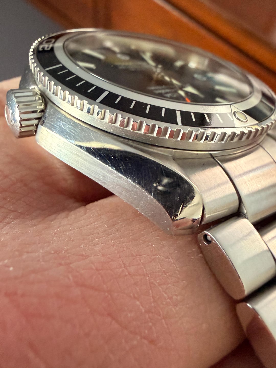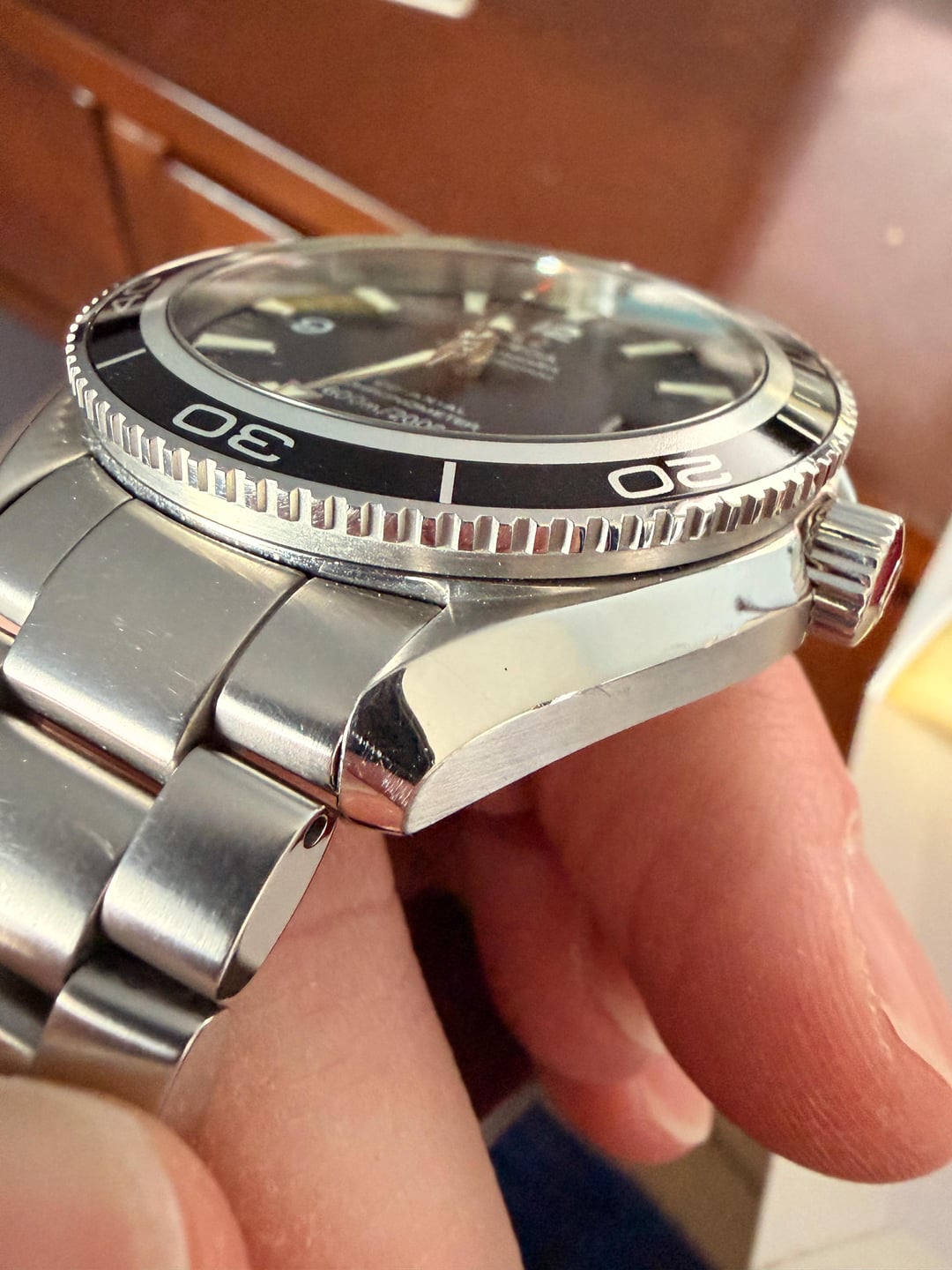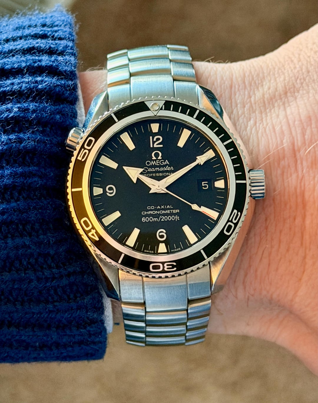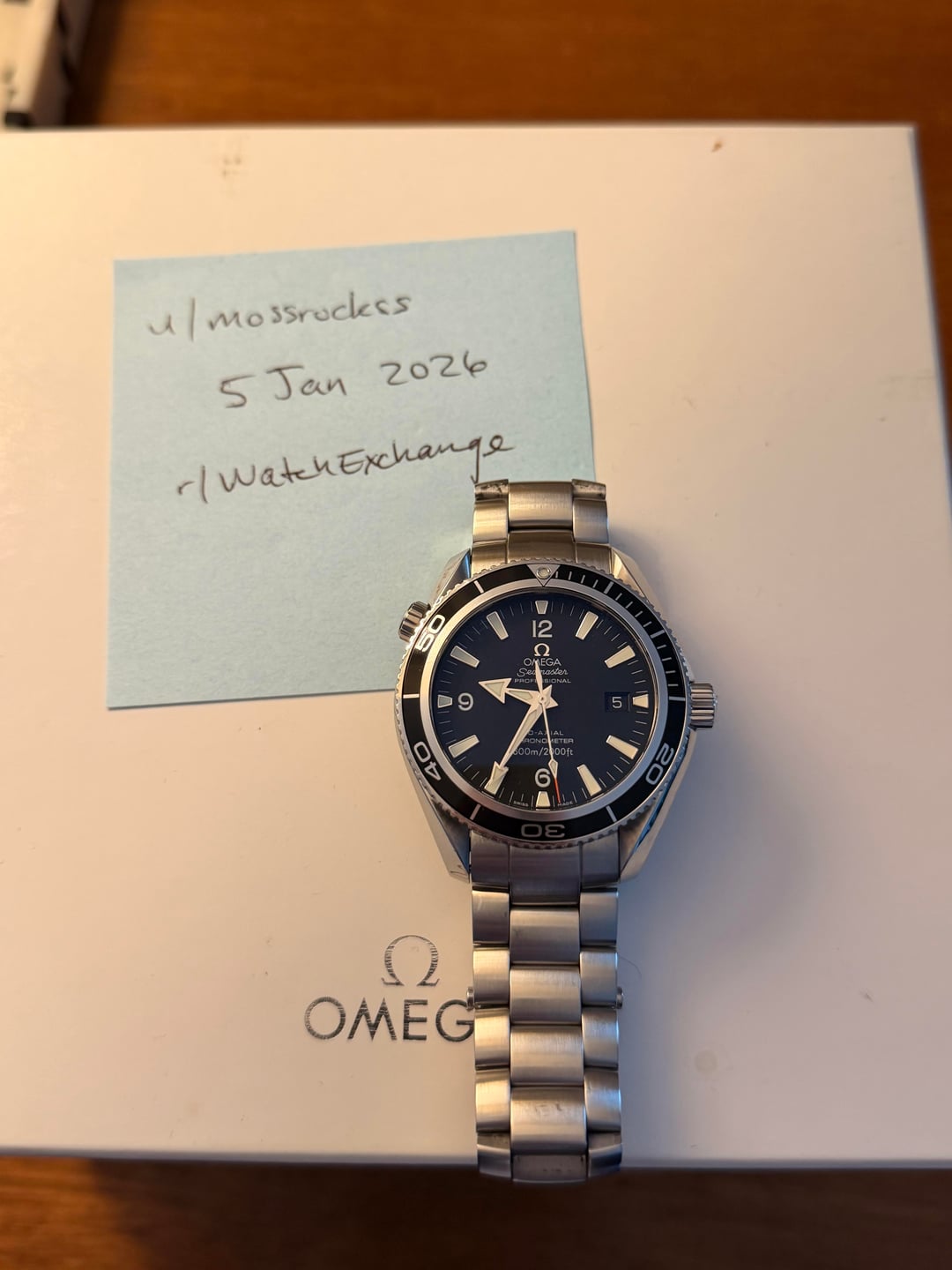 **Omega Seamaster Planet Ocean 2201.50. 42mm. 2500 caliber. First gen.** Includes: Original box. Original bracelet with links to size up to an 8-inch wrist (approximately). Currently sized for about 7.25 inch wrist. Warranty card dated 2008. $3,300 shipped in USA only. Will take Zelle, Paypal friends and family, Venmo or wire transfer. When I bought it 2 years ago, I had Omega perform its 6-point inspection and it passed, meaning it was water resistant to 600m and not in need of service. I haven't done that recently but it runs as expected as far as I'm concerned. Condition is good, with surface scratches and one or two little dings or heavier scratches on the lugs. Bracelet is in great condition as I haven't worn it on that bracelet hardly at all.