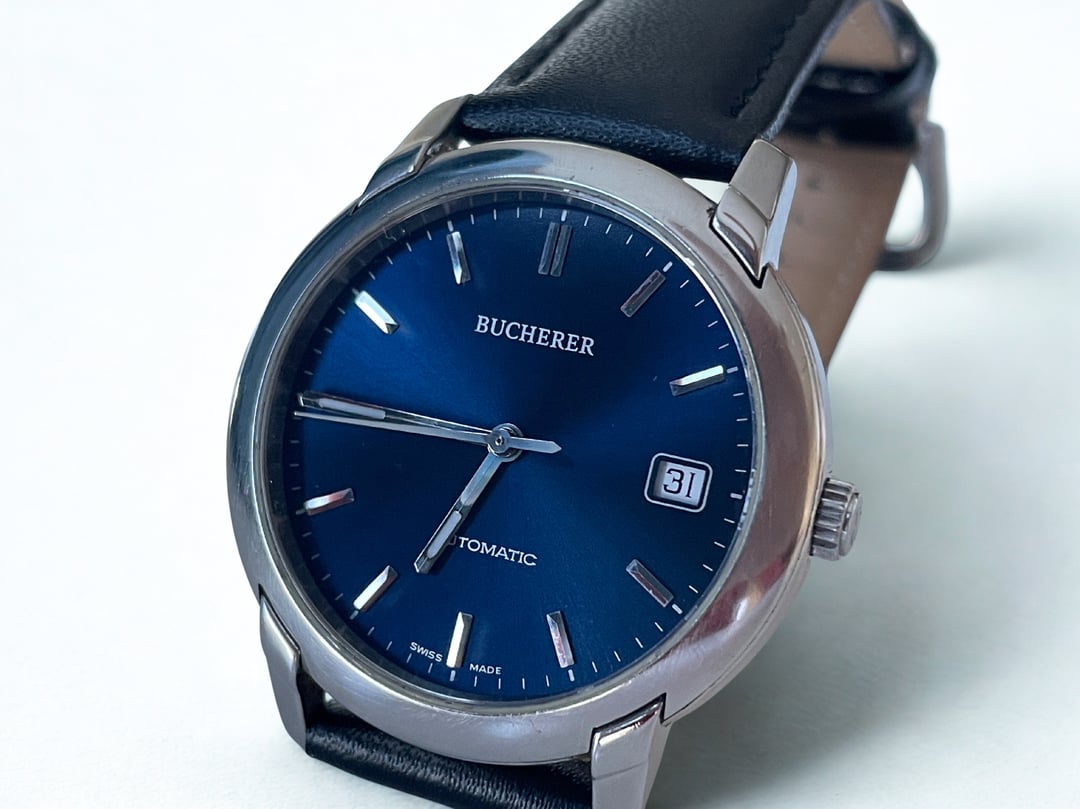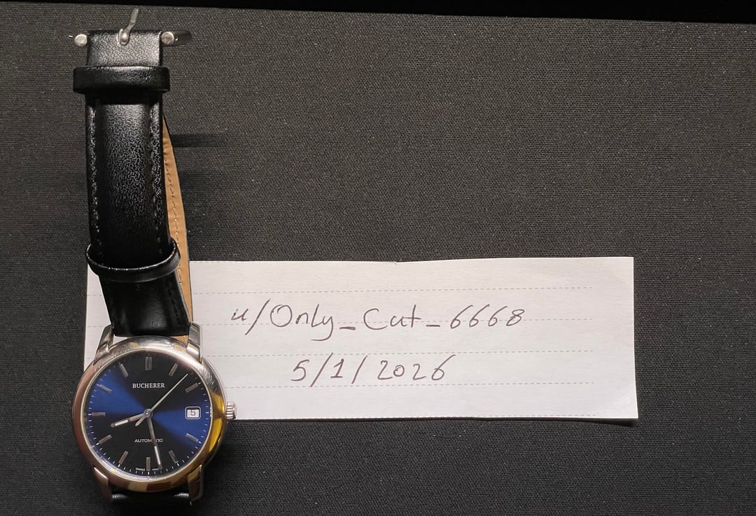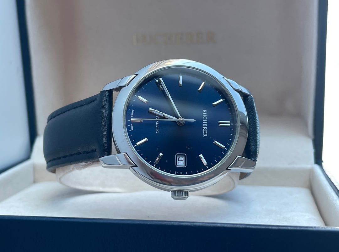 **Price:** 450 € + Shipping **Timestamp**: [https://imgur.com/a/Lgju9c5](https://imgur.com/a/Lgju9c5) **More Photos**: [https://www.dropbox.com/scl/fo/mbpest7doiybojh2plr2k/ALrJuCwuKO6AT6a5qOAG-sY?rlkey=iqgx7tv5zjm8ptyqcug2j7i1u&st=curt60ql&dl=0](https://www.dropbox.com/scl/fo/mbpest7doiybojh2plr2k/ALrJuCwuKO6AT6a5qOAG-sY?rlkey=iqgx7tv5zjm8ptyqcug2j7i1u&st=curt60ql&dl=0) \- New Seller here, located in Poland. \- Shipping using DHL fully insured to the total value of the watch + Tracking number. \- I’m very comfortable with video calls and any questions about the watch, and any proofs needed. \- Feel free to ask for more photos and videos, I’m here to make sure you are fully satisfied with your watch. \- All my watches are my own, and I have them with me. \- You can check my IG page (zoir\_co) \- Prefer payment (Wise - PayPal) \- The buyer is responsible to pay all taxes and import duties on the watch. \- Please check the photos carefully as they are considered a part of the watch description. **Watch details and condition:** * The watch comes with the original box. * The leather band and the buckle are aftermarket. * Overall good condition to its age with signs of wear on the case, and the back case. * The watch is in a good working condition, although we didn’t test the watch for either time accuracy or water resistance. * Bracelet length is approx 200mm (20cm) in total. **Key Features** * Bucherer Vintage Swiss Made 2824.901 Automatic 25 Jewels Classic Men's Watch * Automatic 25 Jewels movement * Swiss made * Swiss movement * Case Dia 36mm * Dial is a beautiful blue sunburst.