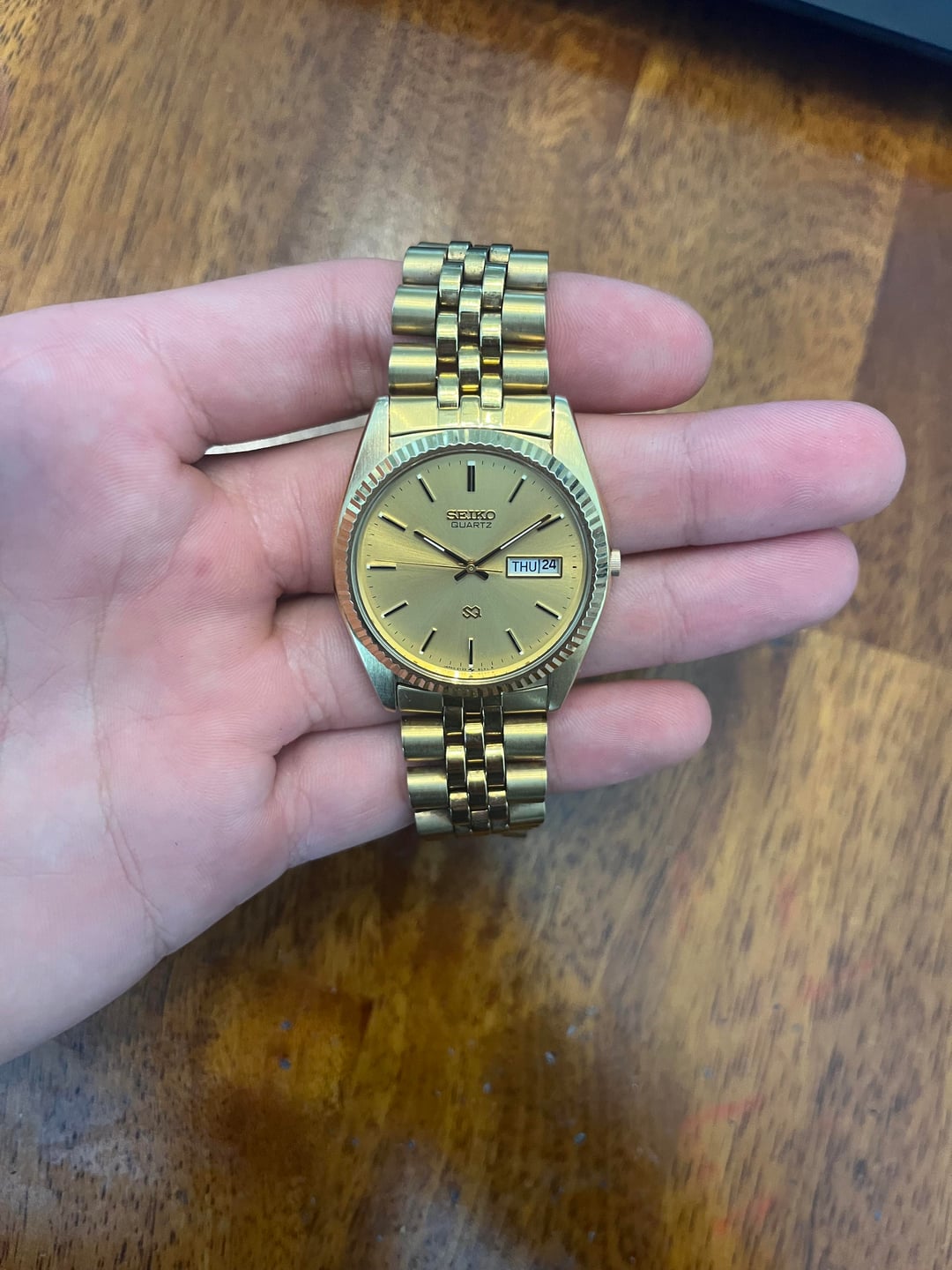 Vintage Seiko SQ 5Y23-8A60 Condition: Vintage-Good; 7.5/10 Comes with: Watch Only 💰 Price: USD$149 shipped CONUS 💳 Payment Method: PayPal (F&F), Zelle, Venmo, Cashapp 📫 Shipping Method: CONUS shipping included; Worldwide shipping possible but not included Description: Hi Watchexchange, today I have a stunning example of a vintage Seiko SQ 5Y23-8A60! The movement runs very well and looks beautiful on the jubilee-style bracelet. This piece will fit up to a 7-inch wrist. Happy to hop on a call to show the piece to any interested buyers!