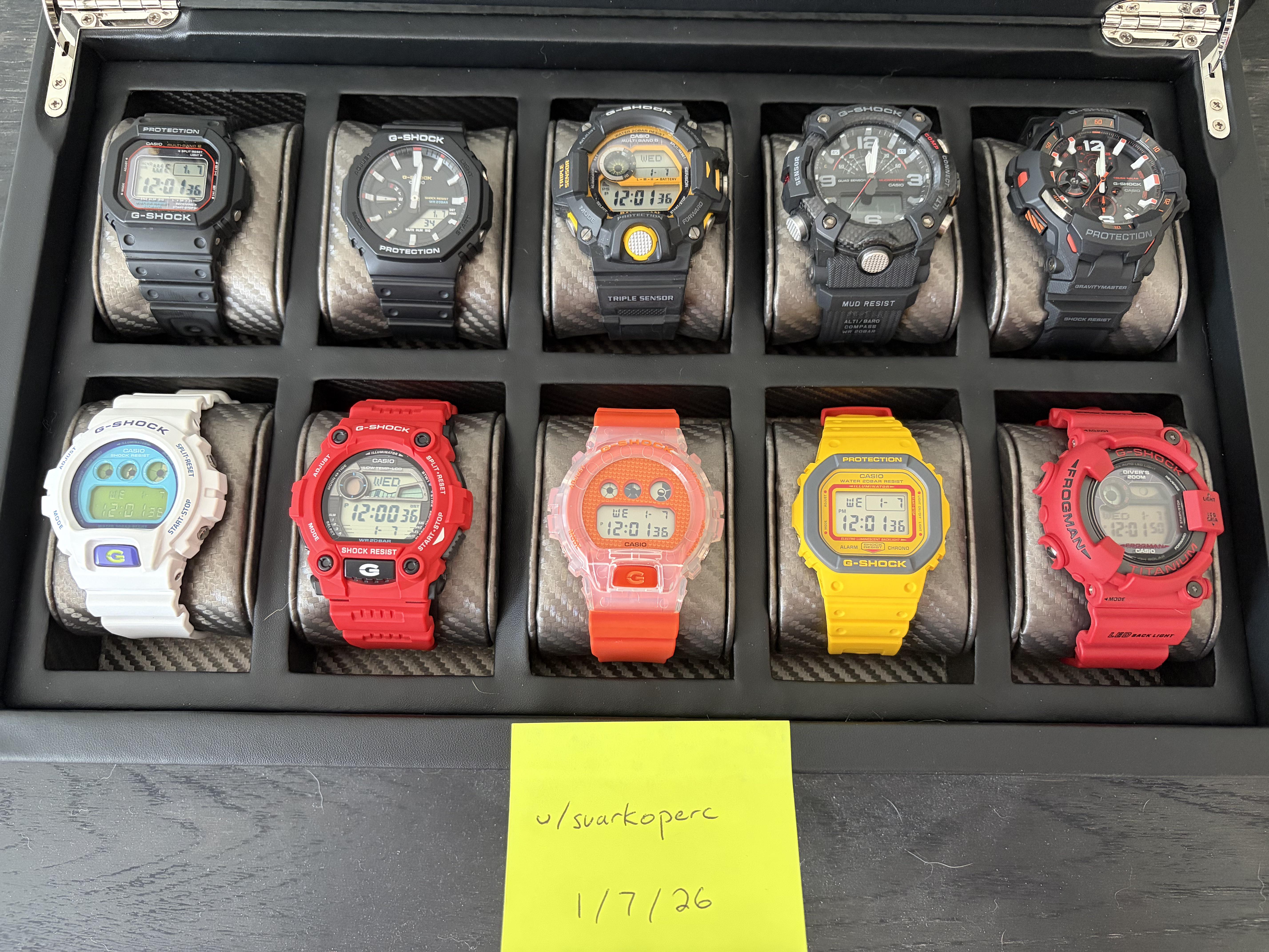 Hi all! I recently changed jobs and haven’t had much of an opportunity to wear my G-Shocks. So, I’m posting them here just to see if anyone is interested in the lot. If not, many of them will likely show up soon individually. They’re all in pretty great shape, haven’t been worn all that much. If you have questions or want photos of individual watches, please let me know. I don’t have a set price in mind, so if you have any interest, throw out a (reasonable) offer. Thanks! GW-M5610 GA-2100RL GW-9400Y GG-B100 GR-B300 GW-6900RCS G-7900A GW-6900GL GW-5610Y GW-8230NT