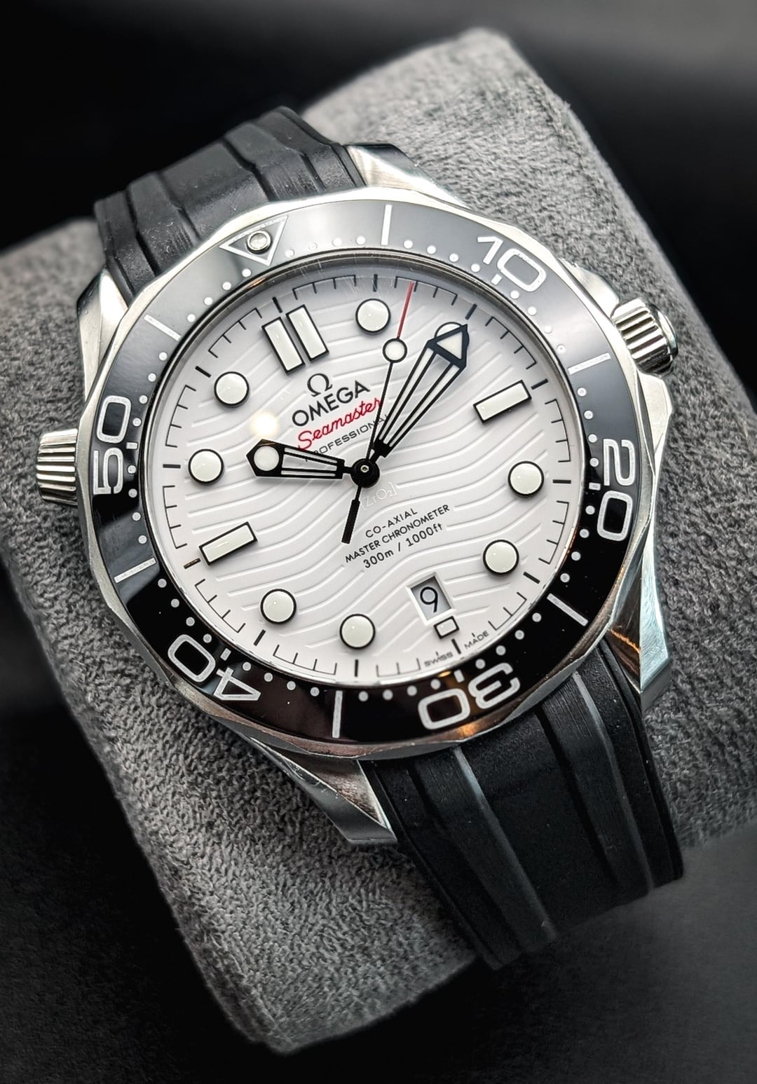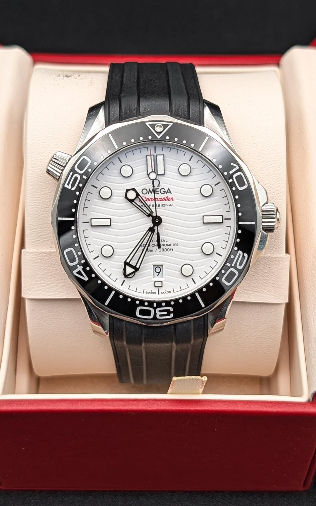 The Seamaster Pro 300 is truly an incredible watch. It somehow manages to be both robust and beautiful, reliable and elegant, solidly built and incredibly comfortable, all at the same time. I can't say there is an "ugly" SMP, because all the colorways are beautiful in different ways. However, this version "The Great White" is the rarest and in my opinion the most beautiful. The white dial and black markers with just a pop of red presents beautifully- crisp and clean with lots of contrast while still staying understated. A truly beautiful color combo from Omega that is rarer and far less commonly seen than the blue, black and gray versions. This one is on the excellent Omega black strap and comes as watch and Omega carrying case at hefty discount for $3750 shipped. Brand: Omega Model: SMP Seamaster Pro 300 Great White Reference: 210.32.42.20.03.001 Case Size: 42mm Comes as: Watch and Omega Carrying Case Condition: Very good condition with only very minor wear from normal use 8.5/10. Can be returned to like new with a light polish. Runs great on timegrapher (pic in album) Price:$3,750 Image Gallery: [https://postimg.cc/gallery/6CsPKfT](https://postimg.cc/gallery/6CsPKfT) Timestamp: [https://postimg.cc/2LdMXkL2](https://postimg.cc/2LdMXkL2) Open to trades or purchase of: Modern Rolex, Tudor, Omega, Cartier, Breitling, Grand Seiko, IWC, Zenith. Payment Methods: Zelle or Wire. Paypal FF, Venmo and stable currency crypto available for established buyers