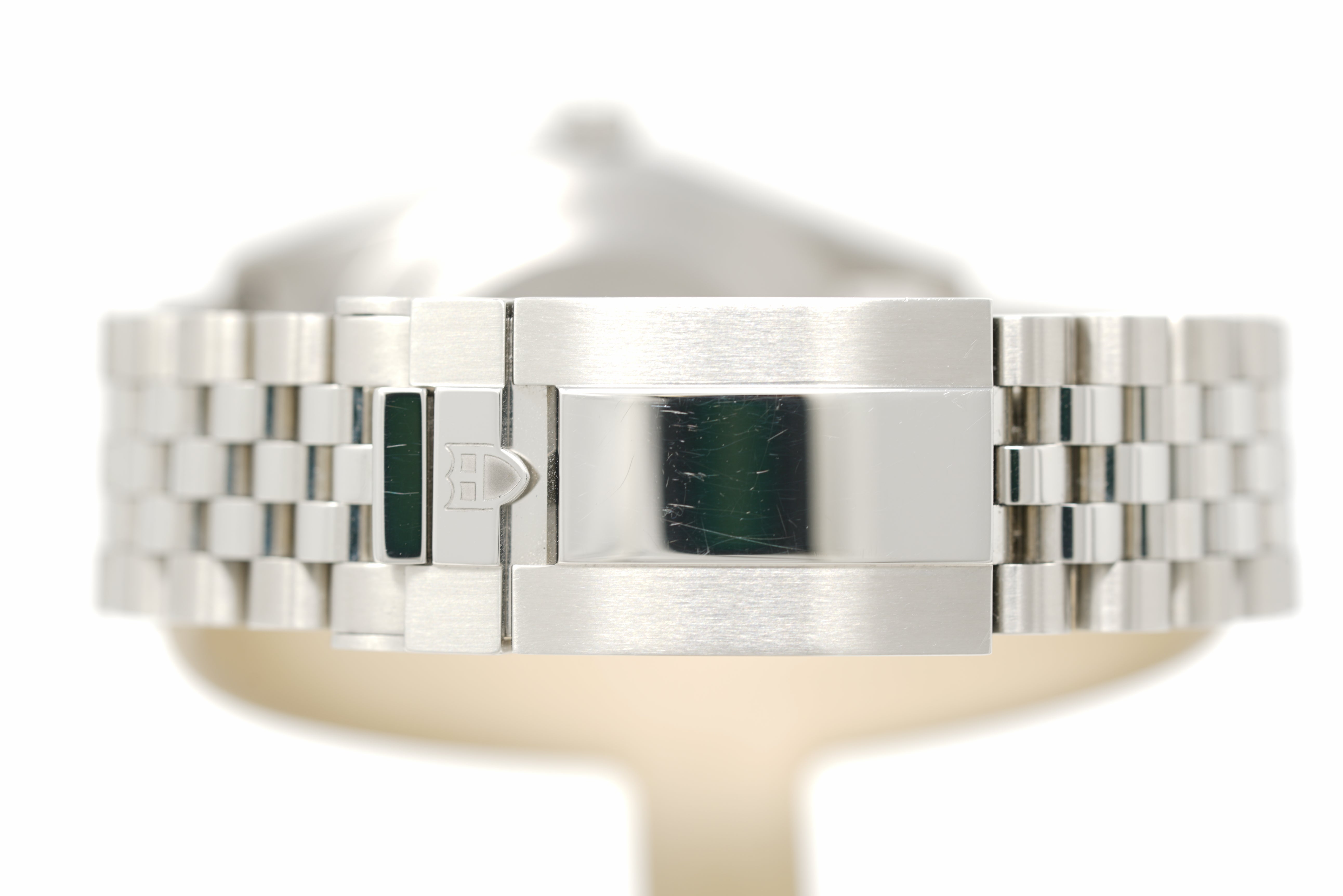 This pre-owned watch is in 88% condition due to slight marks on the lugs, bezel, and throughout the case. The bracelet is in 89% condition due to slight marks on the links and clasp. Originally purchased in June 2025, this watch comes with its inner and outer box, instruction manual, warranty card, hangtag, and the one-year Topper Pre-Owned Select warranty.
