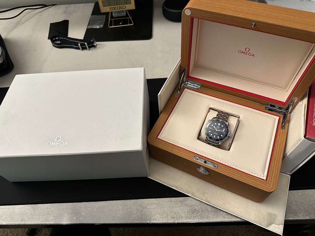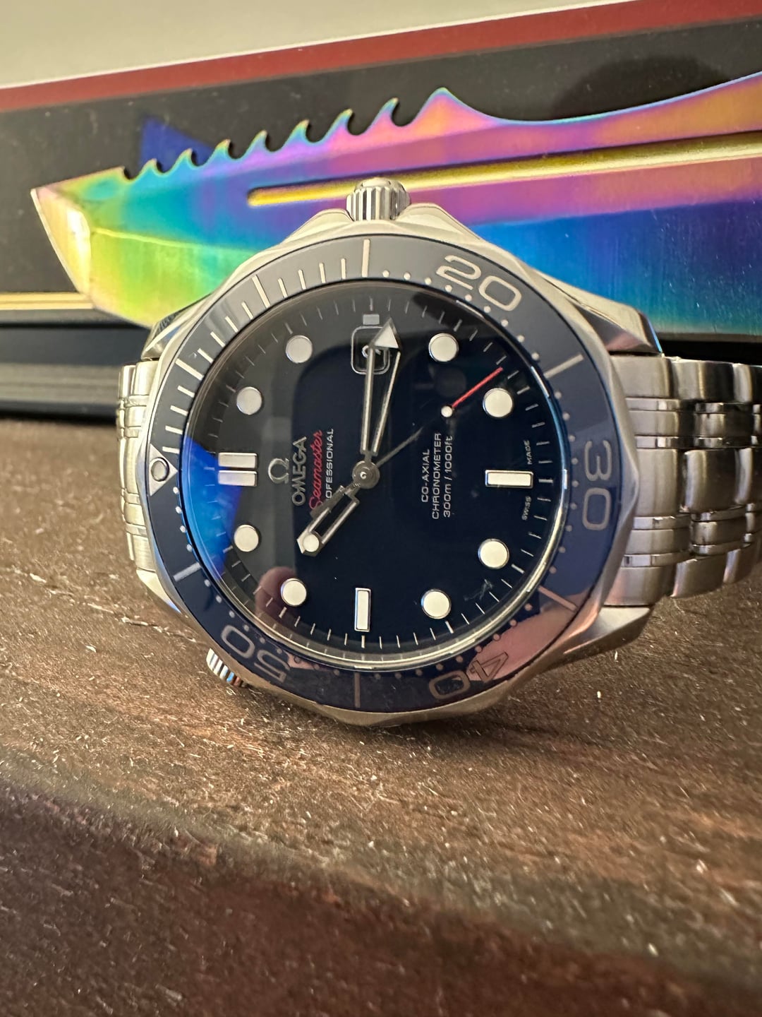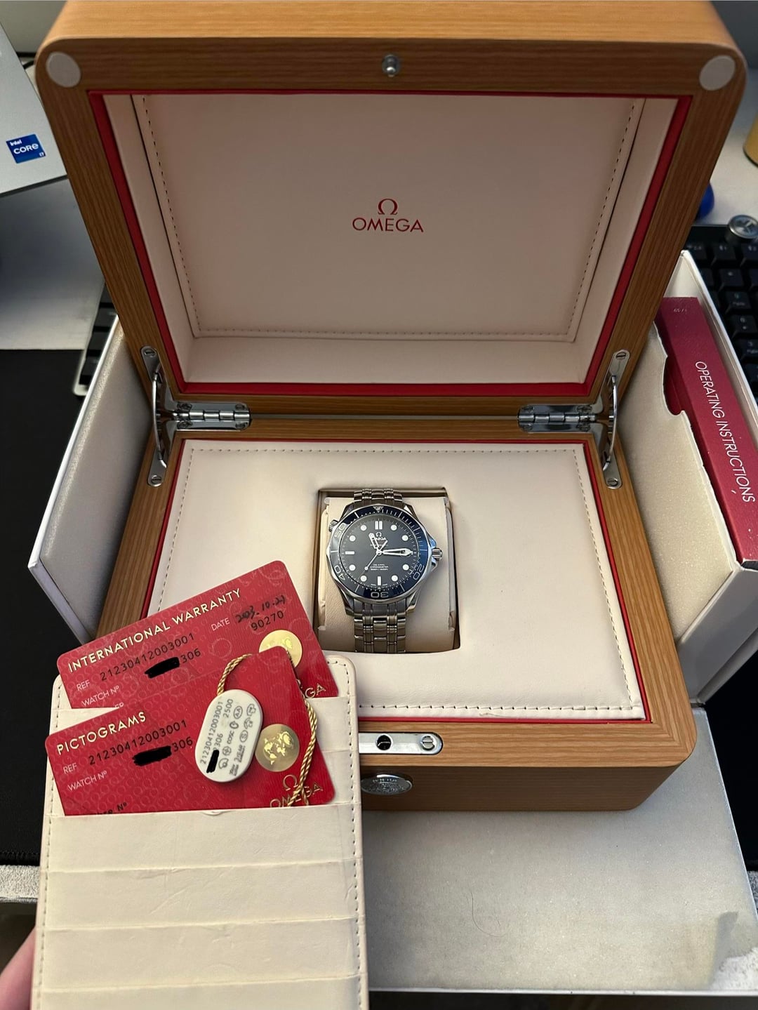 Omg Seamaster Professional 300 Ref. 212.30.41.20.03.001 41mm • Blue non wave dial • Caliber 2500 Co-Axial Movement ☑️ Double boxed ☑️ Warranty card, pictogram and hang tag Card dated 10/23 Omega warranty until 10/28. Overall amazing condition, minor hairline scratches on outside of one of the lugs as shown. Crystal and bezel are clean. Full links. Payment via Venmo or PayPal F&F Asking: $3500 Location: South Carolina 🇺🇸 Happy to FaceTime or send more information upon request.