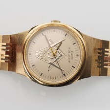 | BULOVA ACCUTRON QUARTZ MASONIC 10K GOLD PLATED 1979 (N9) FREEMASONRY WATCH RUNS watchsupplyhouse (20596) |