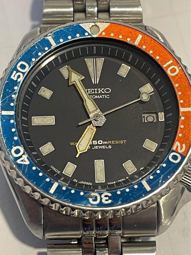 | Seiko 7002-700A Date Diver Scuba 150m Automatic Mens Watch Pepsi Bezel 1995 READ misterjimmyfl (2814) |