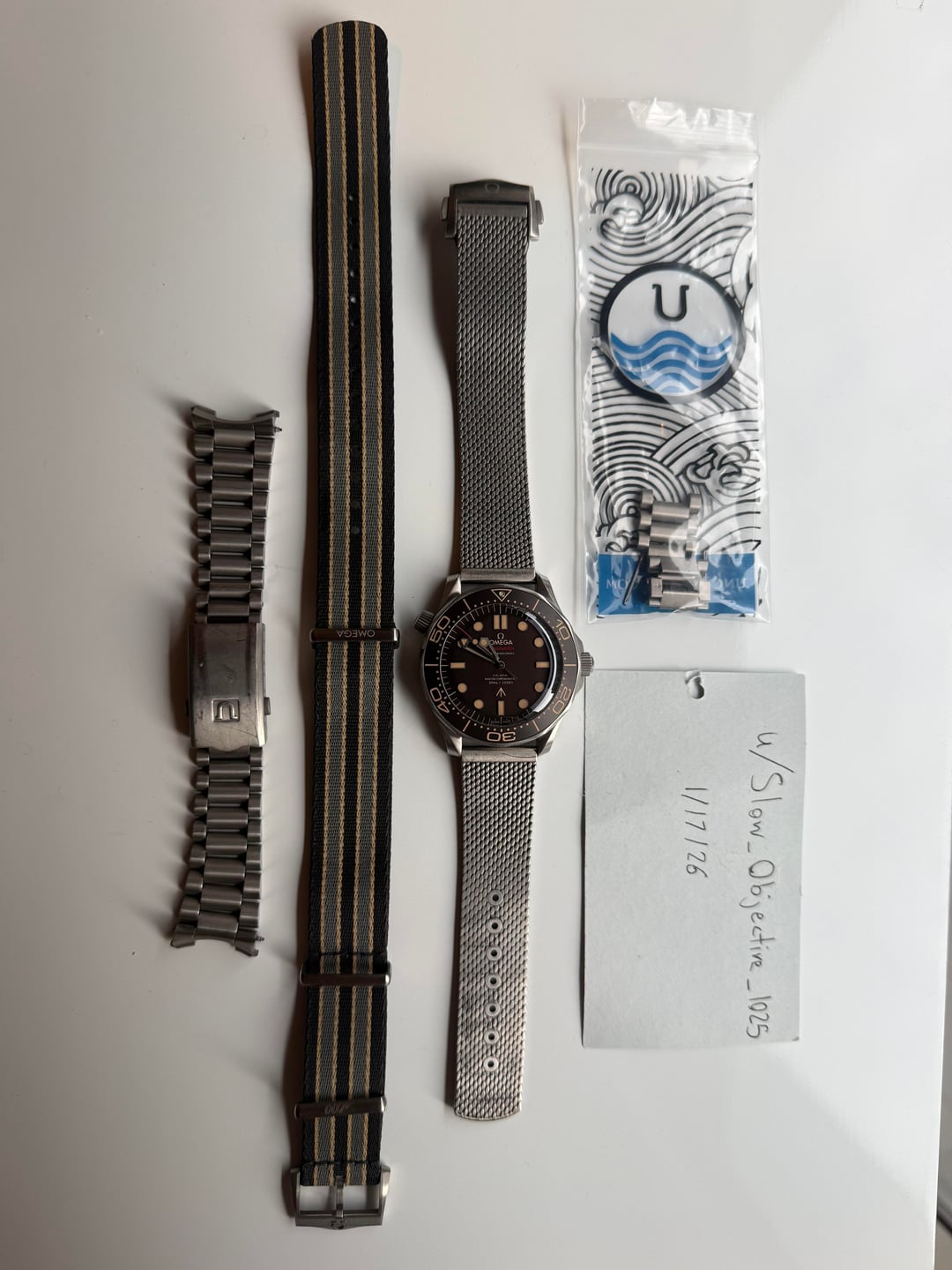 Hey everyone, i’m selling my Omega Seamaster NTTD on the official Milanese bracelet. Included as add ons are the official NTTD NATO strap and Uncle Seiko bracelet, but you can just buy the watch only if you’d like. No box or papers, but I have the receipt from when I purchased it from a watch dealer. Price: $6000 including shipping Adding on the NATO strap will be another $100. The uncle Seiko bracelet will be another $50. If you recall my last post, I’m selling it to pay some medical bills. I’ve been away for my surgery which went well, and now I’m back to handle the hard part, paying it off. Down to FaceTime or meet any other reasonable precautionary requests. Thanks