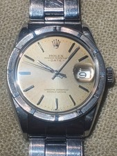 | Mens Rolex Date Stainless Steel Watch Engine-Turned Index Bezel Silver Dial 1501 beckertime (23979) |