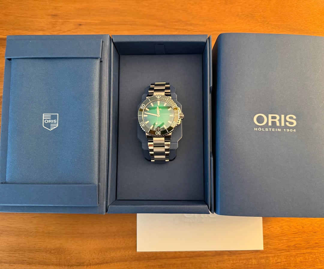[WTS] Oris Aquis Date Calibre 400 - MINT / Full Kit - $2,175 For sale: Oris Aquis Date Calibre 400 Reference: 01 400 7769 4157-07 8 22 09PEB Condition: Like new — Purchased end of December 2025. Worn 5-6 times. Sized to a 7 inch wrist. All links included. Watch could pass as new - case and crystal is flawless. (It’s so fresh that in the wrist shot picture, that the protective tape is still on the bottom left lug 🤦♂️). Location: Washington DC Metro USA Price: $2,175 - (MSRP $3,900). Payment: Venmo, PayPal F&F / G&S (buyer must account for fee), or Zelle Shipping: +$10 USPS insured + tracked. CONUS only unless discussed. What You Get (Full Kit) / Notes: - Full Kit w/ original boxes and paper - All links w/ Oris cloth - AD purchase, not grey market - 5-day power reserve with a 10-year service interval. - Calibre 400-2 movement, not the OG variant. - Warranty card + Proof of MyOris Portal registration (10-year warranty). - Happy to conduct a FaceTime call to provide video, close-ups, and any angle you need. - If in the Northern Virginia / National Capital Region, I’m also happy to meet up in person. - I’ve sold two watches via Reddit the past couple of days; waiting for buyers to receive their purchases so I earn transaction accreditation.