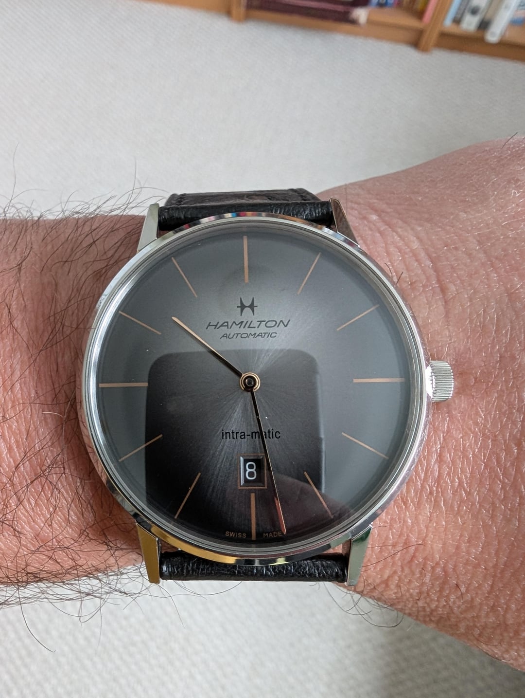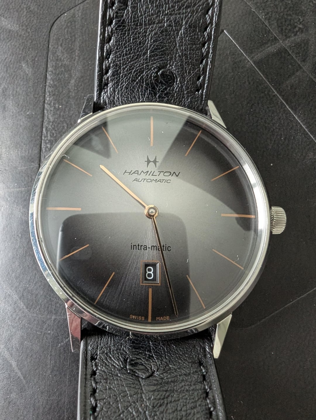 [WTS] Hamilton Intra‑Matic — Like New + Custom Ostrich Leather Band ($125 Value) — $430 OBO