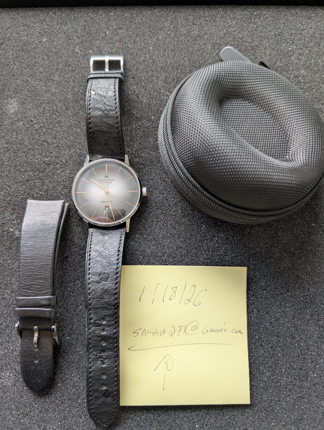 Price $430 OBO — bank wire, Zelle, or PayPal F&F. No trades. What’s Included • Hamilton Intra‑Matic (like new) • Original strap (if applicable) • Custom ostrich leather band (valued at $125) • Box + papers (if applicable) Condition • Like‑new condition • Crystal is flawless • Case shows no visible wear • Runs accurately • No service needed Additional photos or video available on request. Shipping • Ships within 24 hours of payment • Fully insured shipping included in price • Signature required • CONUS only Reason for Sale Updating my collection.