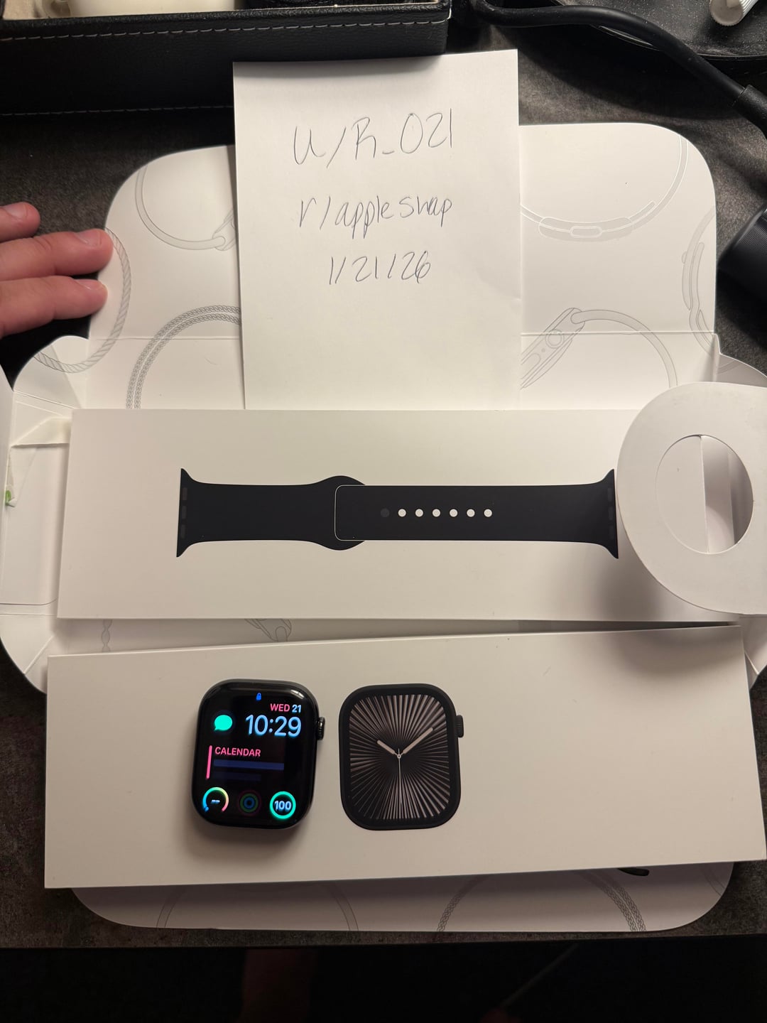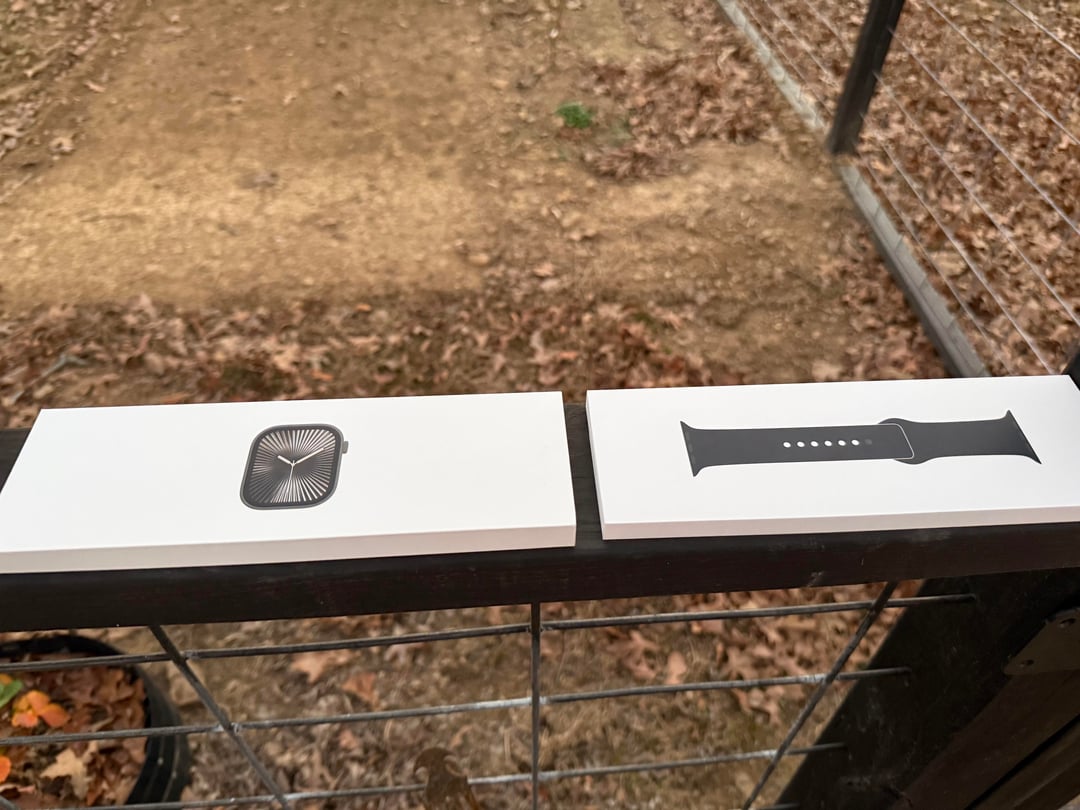 Hi everyone! First time posting here so please let me know if there’s something i’m missing! I'm looking to sell my Apple Watch Series 10 in Slate Titanium, it is 46mm. I bought it new in July for $880. It's in perfect condition, includes box, strap, and charger. Also has AppleCare+ (Drop, Crack, Spill) Protection until July of 2027. Can be extended upon request. The pictures are mine and were originally taken and posted on FB marketplace December 26th. I listed it last night on r/appleswap as you can tell by the timestamp. I don't have any sales on this subreddit but have lots of confirmed sales on r/knife_swap , I can FT or whatever you need before purchasing. Looking for $650 OBO shipped via PP G&S or $600 for local pickup in AR. Open to trades such as Hamilton Murph 38mm (White Dial), Traska Summiteer 38mm (Black Dial), or Longines Spirit Pilot 39mm.