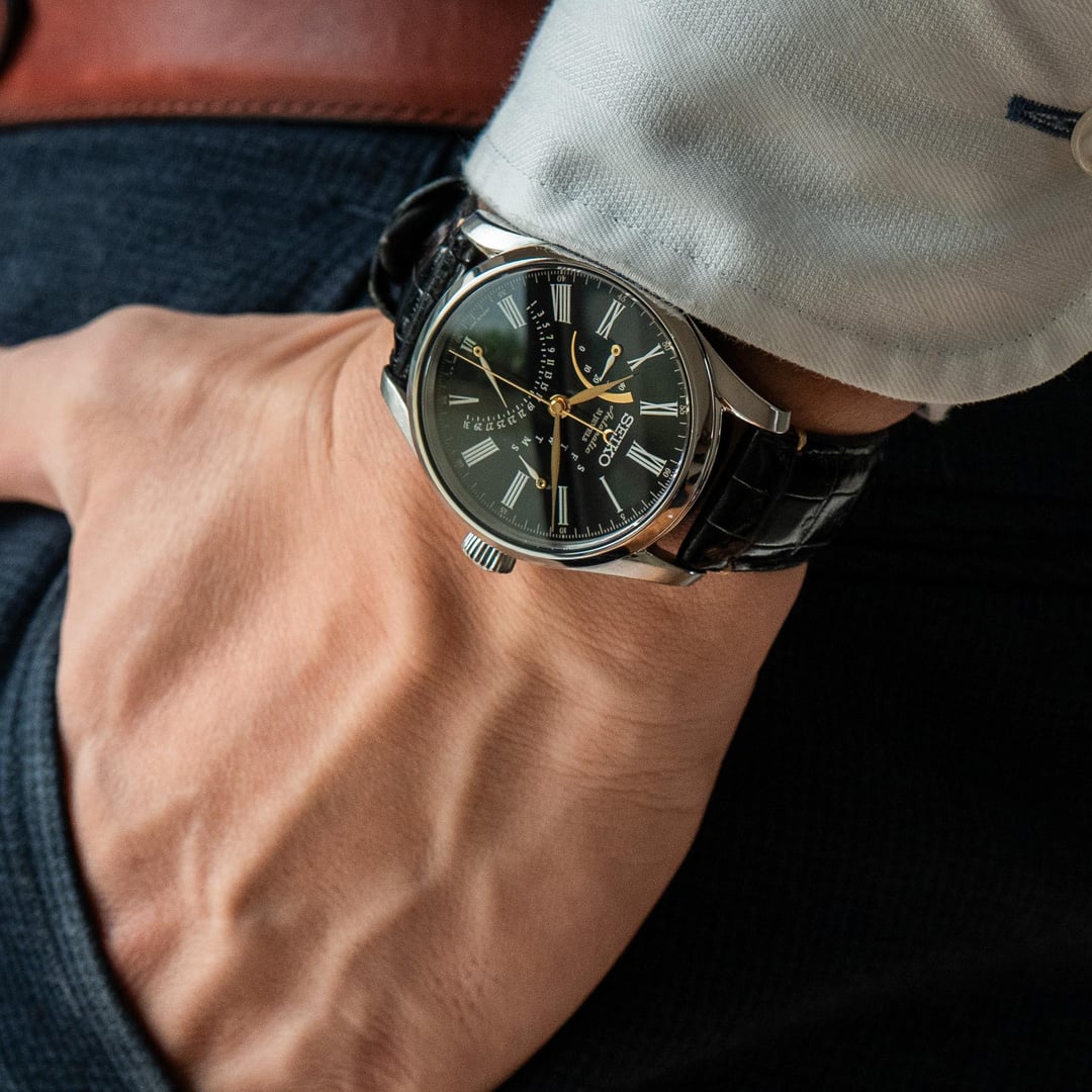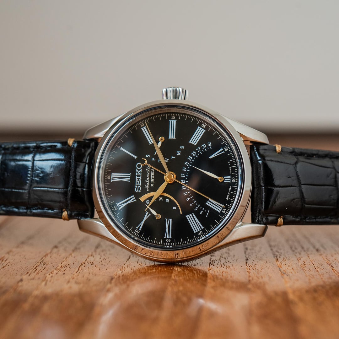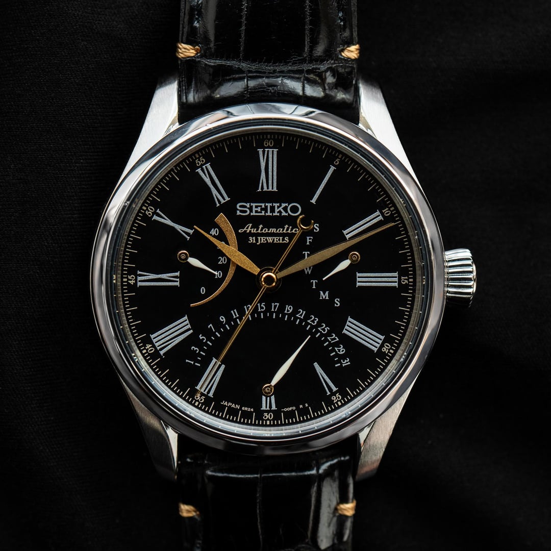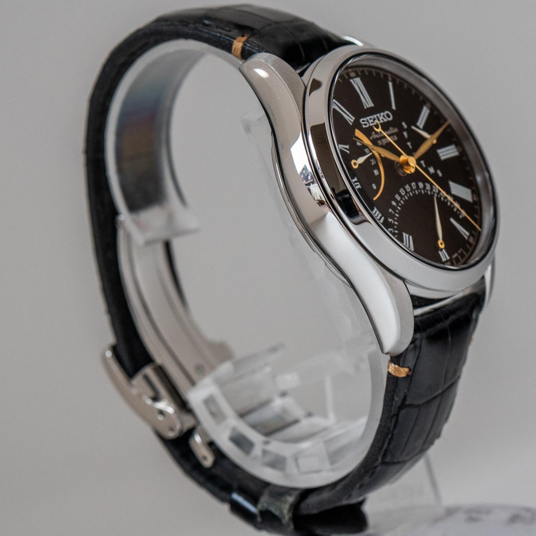 # Reference: **Model:** Seiko SARD011 / 6R24-00N0 **Production Date:** December 2016 **Timestamp:** [https://imgur.com/a/SobaDxc](https://imgur.com/a/SobaDxc) **Album:** [https://imgur.com/a/kQO6QaT](https://imgur.com/a/kQO6QaT) # Features: **The Comparison.** The slightly subdued version of the SARD012. Emphasis on “slightly”. That jet-black, glassy Urushi lacquer dial with Maki-e gold accents isn’t exactly understated, and nor would you want it to be - it’s an absolute delight I never tire of seeing. **The Face.** There is but a single Urushi lacquer artist whom Seiko has entrusted with producing these lacquered dials: Mr Isshu Tamura. Every dial is hand-painted in an extraordinarily painstaking process that involves adding layer after layer of lacquer by hand. To describe this dial as black is unfair - it’s the richest, sleekest black you’ve ever seen on a watch. **The Accents.** The gold maki-e hands and power reserve indicator contrast beautifully against the jet-black dial, both in terms of look and texture. **The Details.** The lacquer curves gently down to meet the white-glazed hands, leaving a subtle dimple around each stack. It’s not something you’d immediately notice, but it makes the dial even more playful in the light. An impressive feat, considering its vying for your attention against powered gold. **The Movement.** A silky 28,800bph 6R21 double retrograde movement (day and date), with a power reserve indicator at 9 o’clock. # Details: **Condition:** In very good condition overall. Some very hard to notice marks can be seen on the bezel upon close inspection. On the original strap. **Scope**: No box and papers. **Movement**: 6R24 automatic **Dimensions:** \- Case width: 39.2mm \- Case Thickness: 13.0mm \- Lug to Lug: 46.0mm \- Lug width: 20.0mm **Price:** Priced at **$970 + shipping**. Various payment methods accepted. Not accepting trades. Transaction Fees paid by the buyer. **Of note:** Nothing to report.