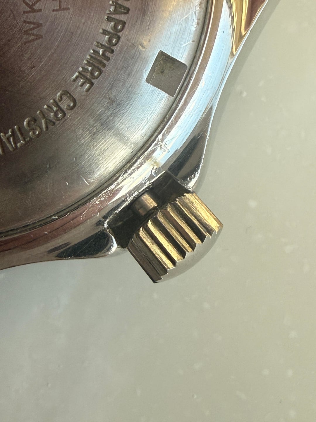 Welcome to Starry Seconds! Please feel free to also check out our other listings! PLEASE COMMENT BEFORE PM. Condition: Good for its age — light wear consistent with regular use and crystal is clean. It runs flawlessly, losing 1-3s a day, although service history is unknown. The watch is priced at about half of market due to the crown being non original. This crown doesn't screw down and can't really be hand wound, although quickset date and changing the time work with no issues. If I was home in NYC, I would deal with replacement, but due to currently being away in college I would rather sell it as-is to someone else who can fix it, or wear it as is. Other than the crown issue, the watch is great and the bracelet fits my 6.25in wrist with 4 links to spare. Asking $270 OBO SHIPPED through paypal FF or Zelle. CONUS ONLY. Shipping from Boston