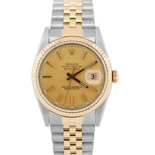 Mens Rolex Two-Tone Yellow Gold Stainless Steel Datejust Watch Gold Dial 16233