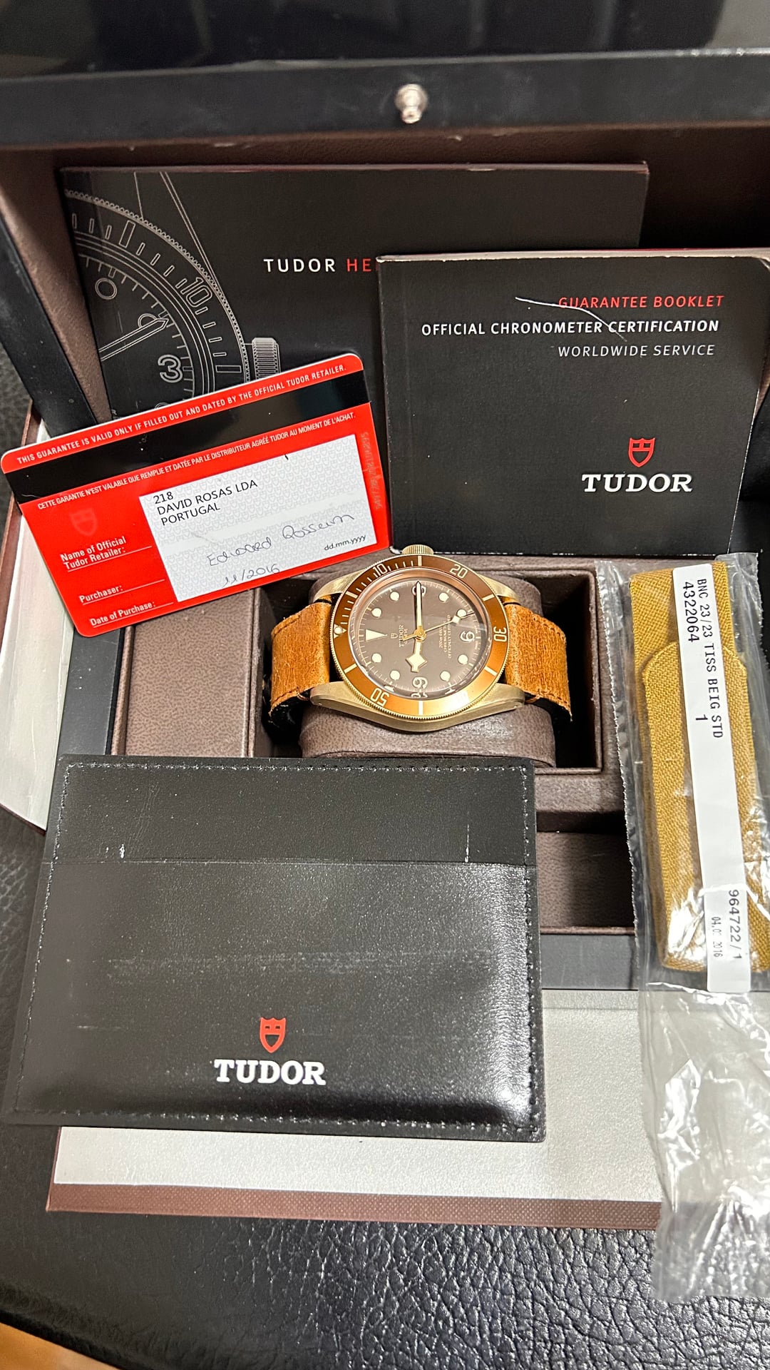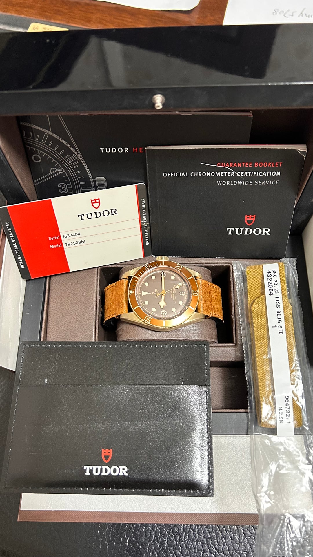 Up for sale is a 2016 Tudor Black Bay Bronze 79250BM Full Set. It is fully functional and is running at -7 seconds per day. It comes with a warranty card dated 2016, Tudor inner and outer boxes, and Tudor booklets. ***The authenticity is 100% guaranteed – the watch has been thoroughly inspected and authenticated prior to listing. Feel free to check out my website*** **Tonneau Atelier** ***in my profile.*** Price: $2399. Payment via PayPal or Wise is preferred. No trades please! Watch is in Chongqing (known as the Cyberpunk City), China. I will pay the customs duties or tariffs for buyers located in United States. Watches will be shipped via FedEx, which delivers to your doorstep in just four days. Worldwide shipping and I am willing to ship this watch anywhere with buyers paying for the shipping. If you really love this watch and pay fast, I will offer free shipping! Feel free to ask for any custom timestamps or videos, I am happy to send them. Please don't hesitate to ask me any questions, thank you! Timestamp: [https://imgur.com/a/XE6QO8t](https://imgur.com/a/XE6QO8t)