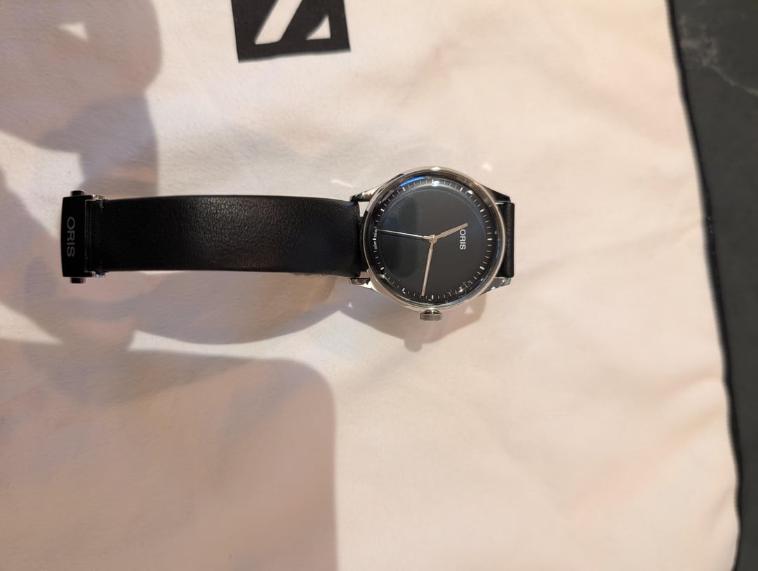 Price: $950 (Includes Shipping) Shipping: CONUS ONLY Payment: Zelle or PayPal F&F Details: Consolidating the collection for a recent grail purchase, so this beautiful minimalist piece is looking for a new home. This is the black dial version of the Artelier S—one of the cleanest, most understated designs Oris has ever produced. No date, no distractions, just an incredibly slim profile that wears perfectly on my 6.5" flat wrist. Condition: Very Good. Some light marks from careful wear, but overall excellent. Movement: Oris 733 (base SW 200-1) Includes: Full kit (Inner/Outer box, papers