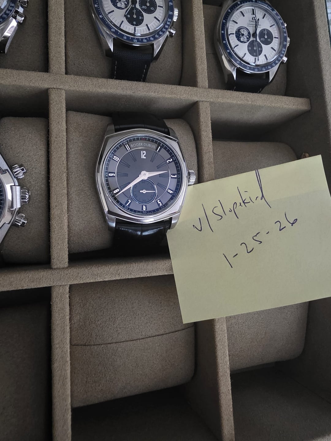 **Roger Dubuis La Monégasque** **Reference:** MG42-821-90-00/0ER01/B This Roger Dubuis La Monégasque is presented in superb condition with only light signs of wear. The watch is running as expected, with all functions operating properly. It comes complete with the original warranty card dated 2012, Geneva Seal (Poinçon de Genève) paperwork, and an additional OEM black alligator leather strap! A bold and refined chronograph from Roger Dubuis, combining distinctive design with true Geneva Seal craftsmanship. Price - $10,999 shipped Pics & Timestamp - [https://imgur.com/a/t6b9lzw](https://imgur.com/a/t6b9lzw) IG = watchfornia Cheers, Adam