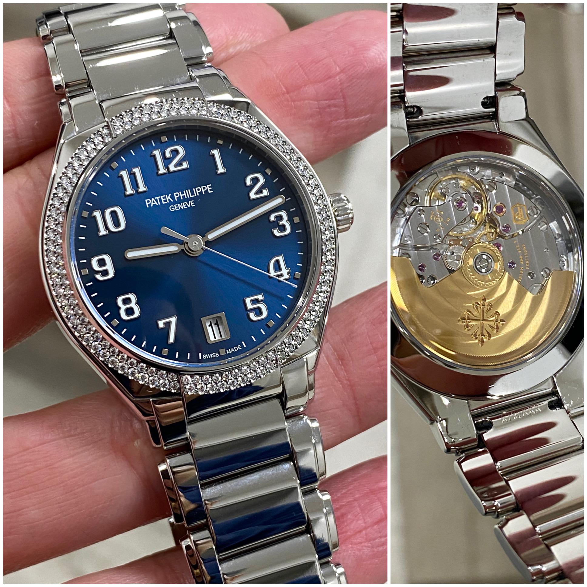 | Patek Philippe Twenty~4 Steel & Diamond Blue Dial Ladies Watch 24 4910/10A jewelsintime (3004) |