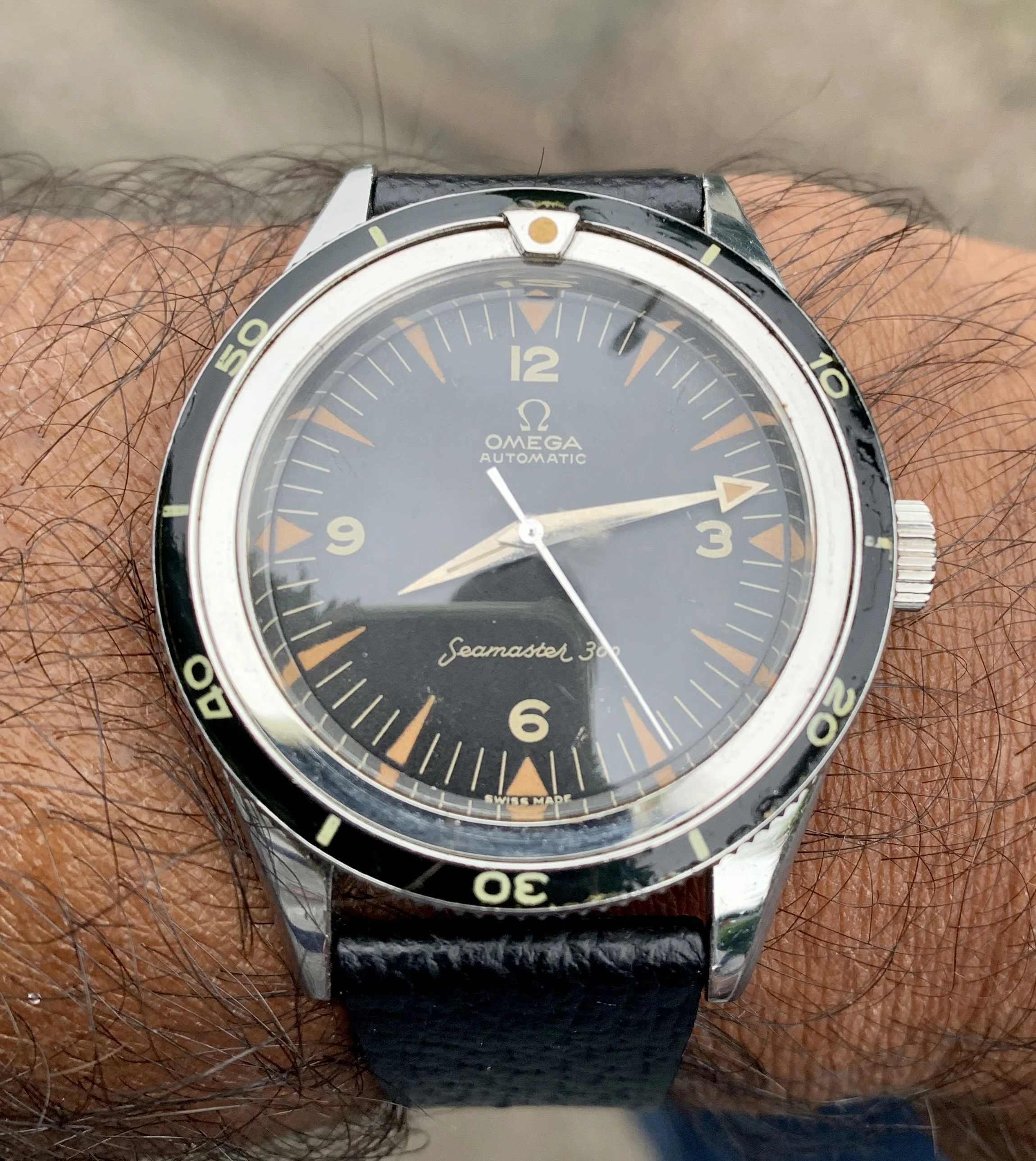 The watch itself is in great condition, lovely lume and aged dial, case is unpolished I think, and everyone I've shown it to says the bezel is original. Question on movement as it's an early number (15.3m) but that's never bothered me, the movement is excellent, and I had the watch serviced in 2020. You'll find out more if you search Seamaster 2913-6 on here, including previous listings and photos. I did sell it once before elsewhere, but the sale never completed. It comes with a vintage Omega mesh and I'll add in a couple of new new quick release leather straps.
