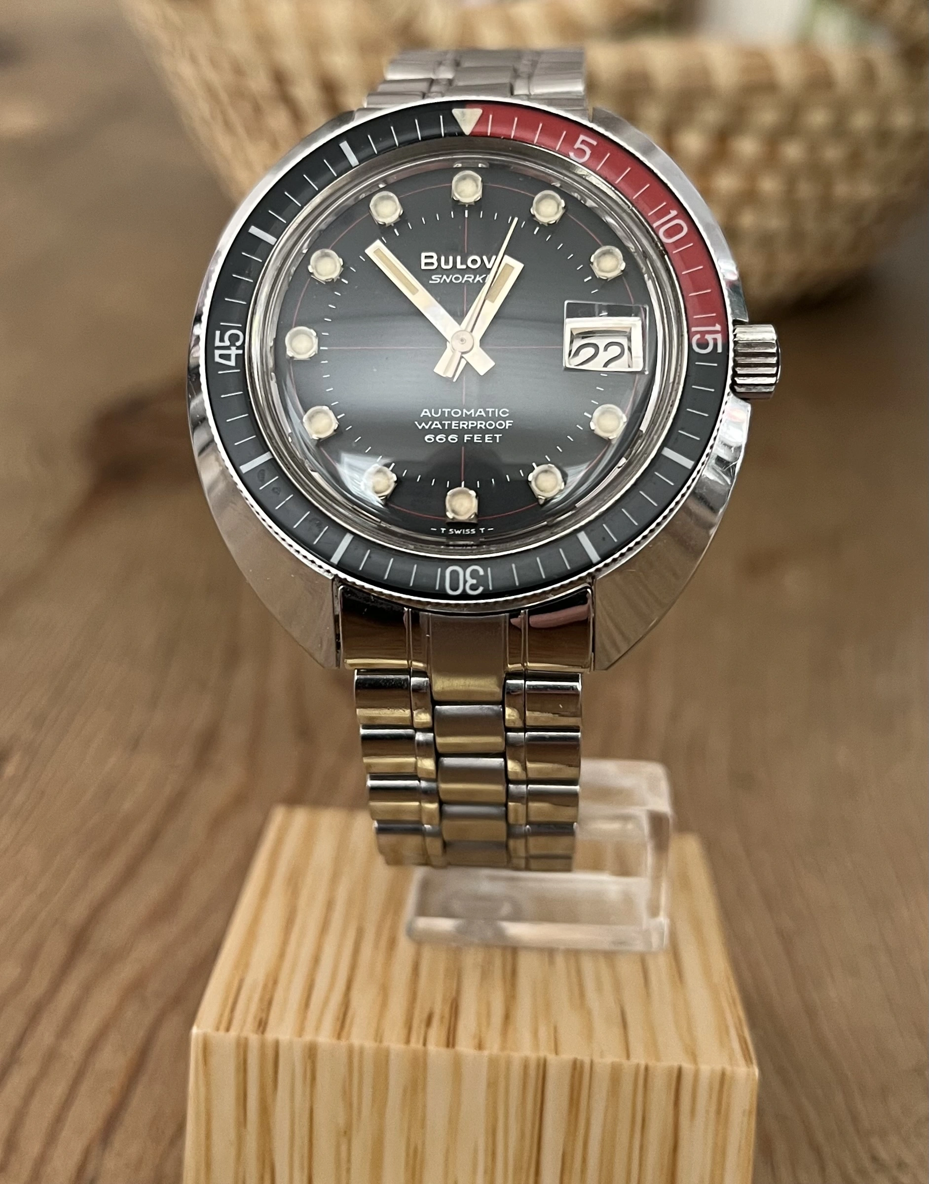 | 1974 Bulova Snorkel Oceanographer Devil 666 Ft. Automatic 39mm Bakelite Bezel aluv_watches (8984) |