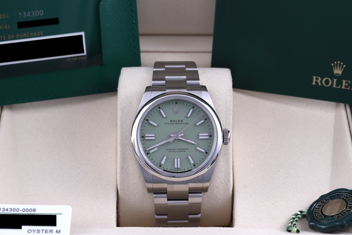 FSOT: Rolex Oyster Perpetual 41 Pistachio Dial 134300 Full Set