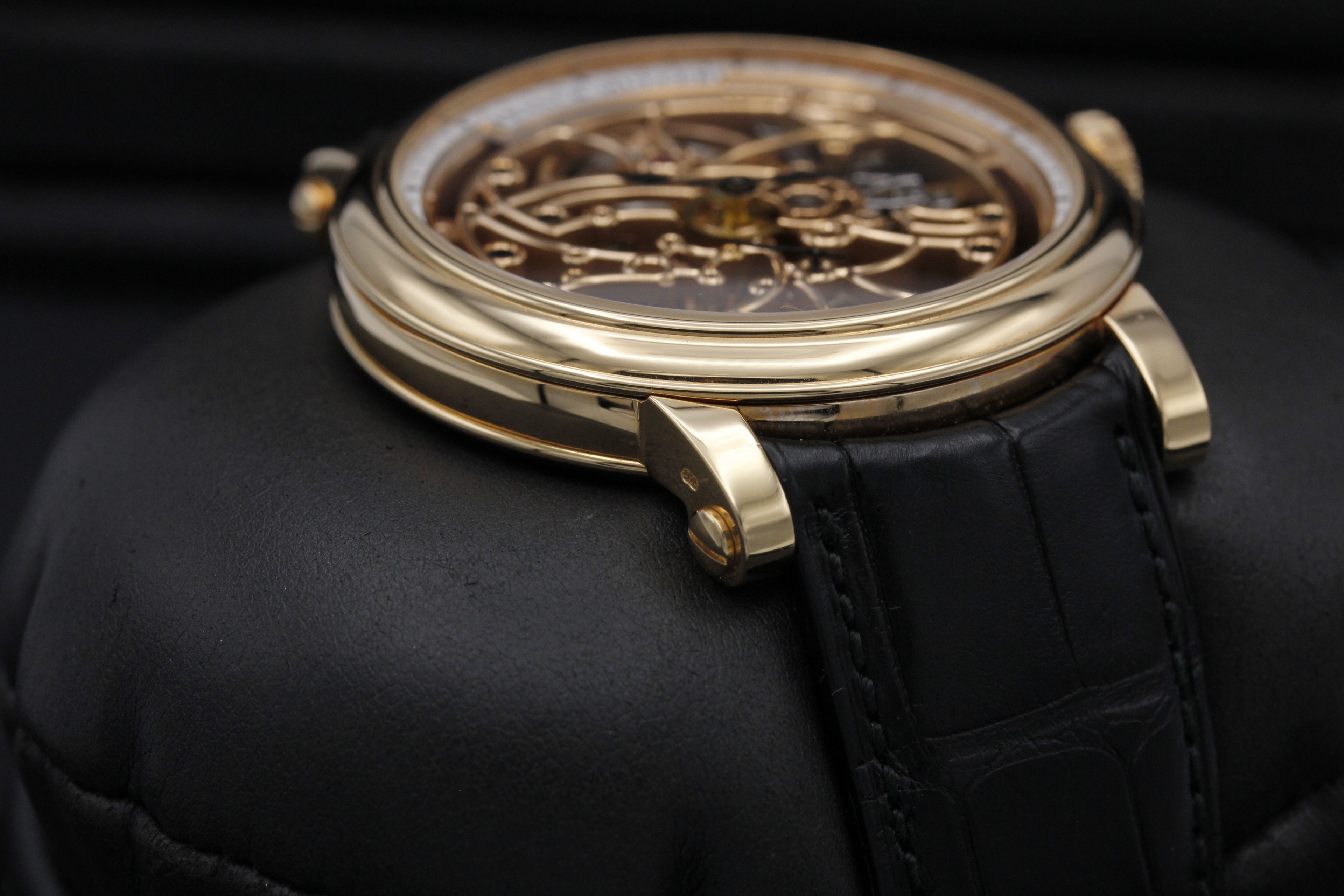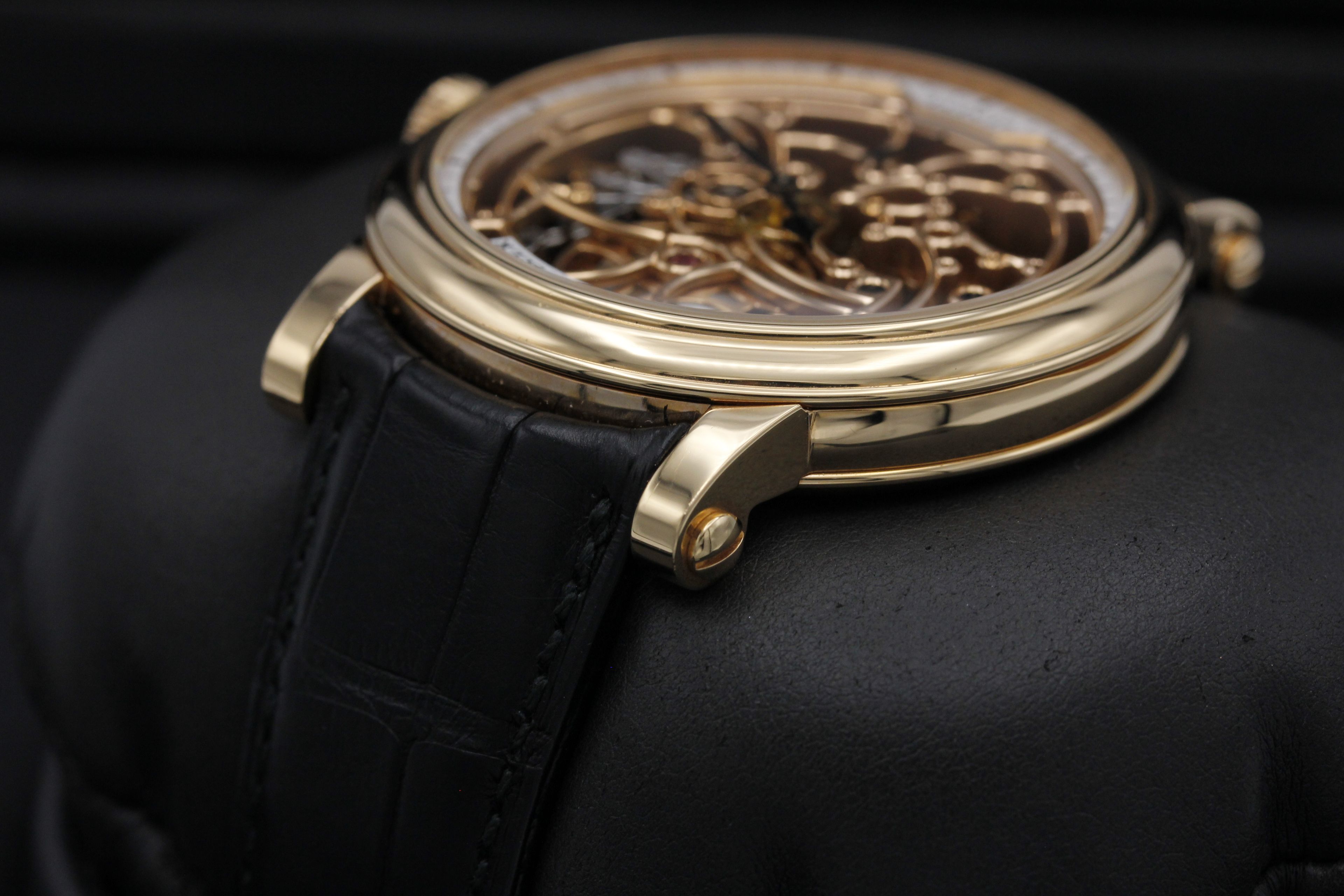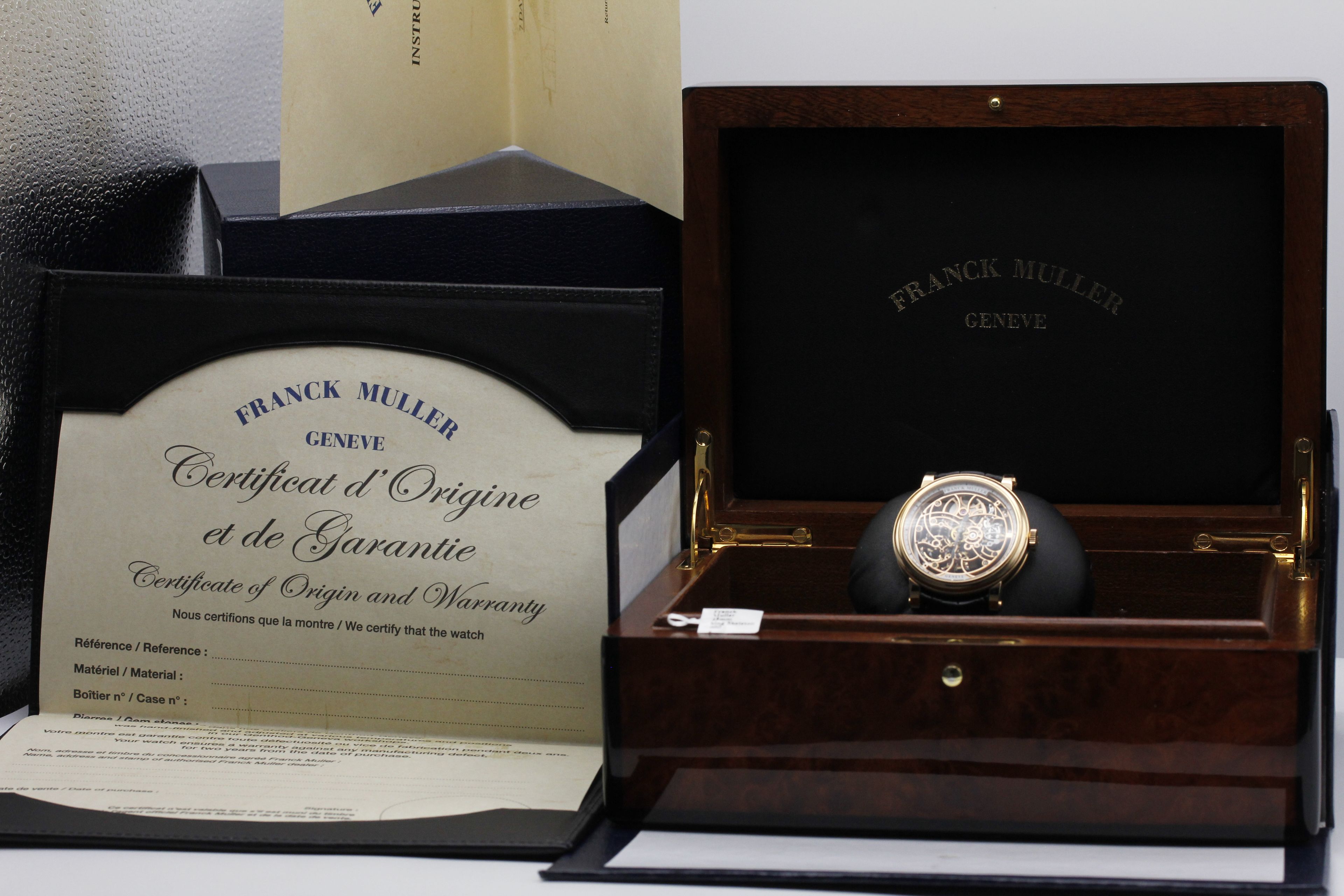 Brand: Franck Muller Model: Skeleton 7 Days Power Reserve Case Size: 45mm Condition: Pre-Owned Grade: Excellent Bracelet Type: Alligator Strap Material: Rose Gold Dial: Skeleton Age: Modern Movement: Manual Winding Reference: 7042 B S6 SQT Additional Notes: Open Certificate