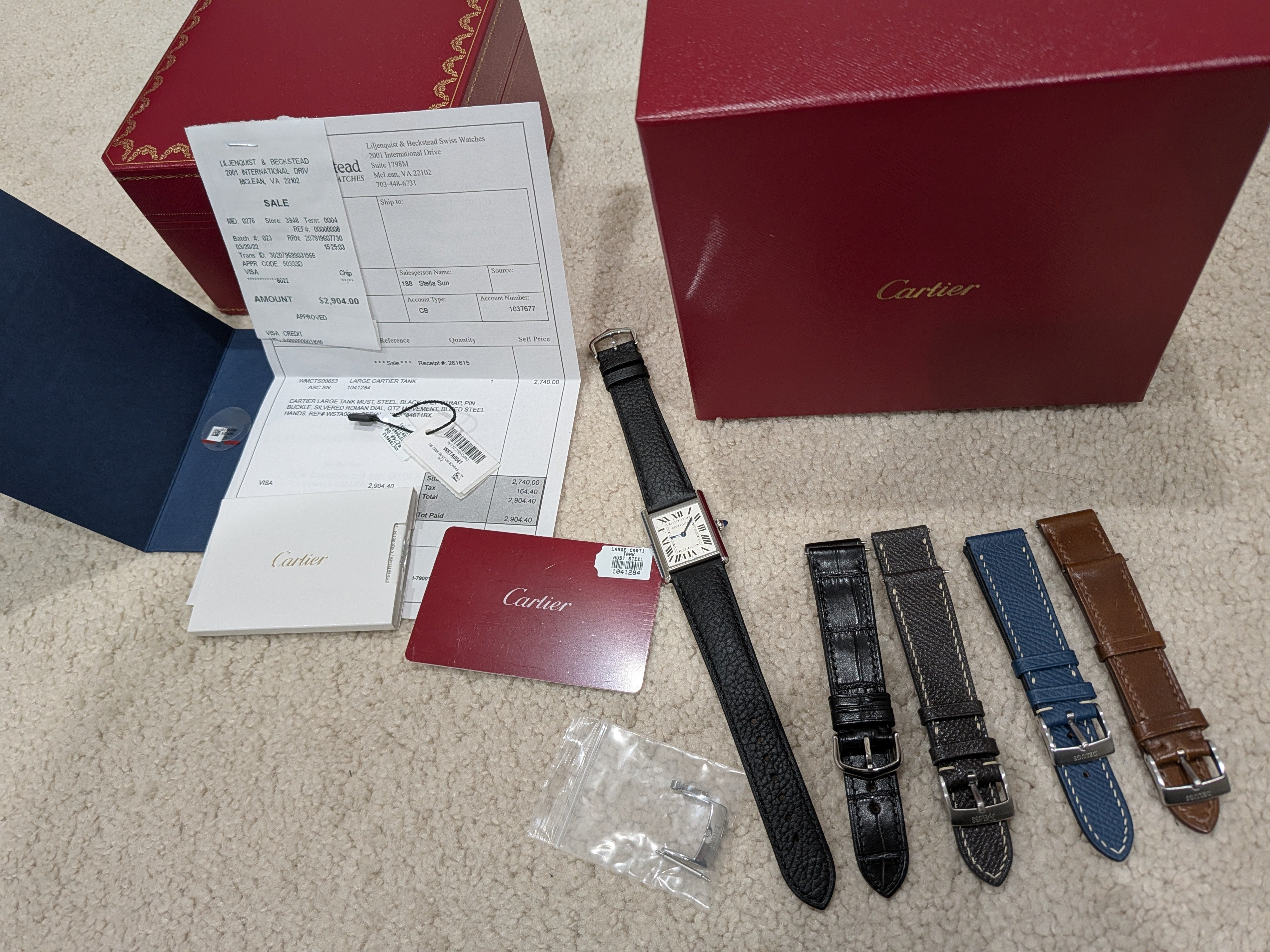WTS Cartier Tank Must Large WSTA0041 full set w/ 4 Delugs Straps