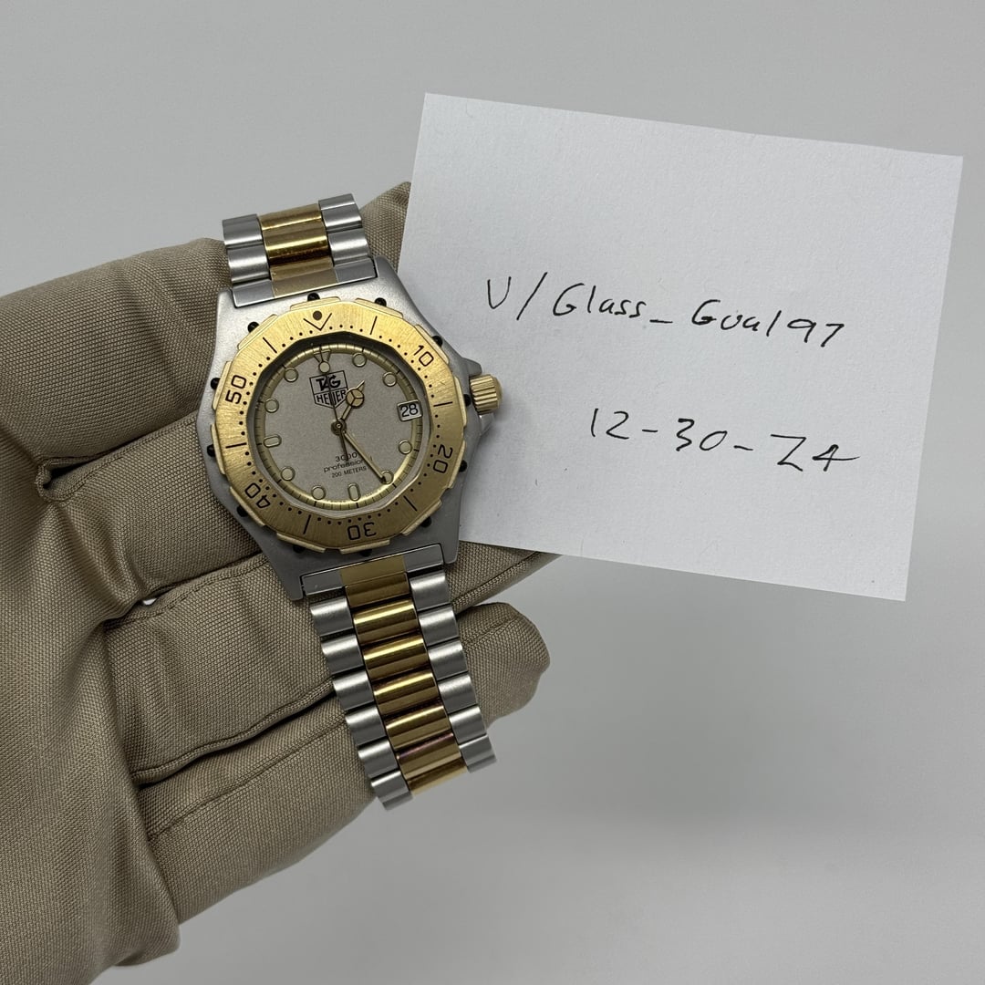 Hey all, up for sale is a Vintage TAG Heuer 3000 Professional Quartz 35mm 934.213 which comes as watch only. Compared to most of these vintage two tone professionals, this one is in rather good condition with almost none of the gold plate worn through. I'm newish to Reddit but not new to the watch world. Pretty active on eBay and Facebook and have a fully operating business, so I'm happy to provide further verification for whoever is interested in this watch. **Specifications:** * **Model:** Professional 3000 * **Reference:** 934.213 * **Year:** Unknown * **Case Size:** 35mm * **Case Material:** Stainless Steel * **Condition Grade:** Fair, running well * **Accessories:** None, please note this has a small bracelet, fitting maybe around 6.5-6.75" wrist * **Dial:** Silver * **Movement:** Quartz * **Band:** Original bracelet **Timestamp:** [https://imgur.com/a/ACo04w0](https://imgur.com/a/ACo04w0) **Price: $275 USD shipped CONUS**, if you're international please message to inquire about shipping/payment options **Payment:** Zelle, PayPal G&S (+3.5% to buyer), or if you have 50+ positive feedback and are based in the US I will take CC via Stripe Portal as an option (+3% to buyer) PM/comment any offers or questions! Based just outside of Minneapolis, MN. I'm a full-time jeweler and watch dealer, so I'm rarely opposed to trades although I'd prefer to sell this piece outright. If you do have a trade that will be less than the value of this watch, send pictures and info to my messages and I'll take a look. Thanks for reading!