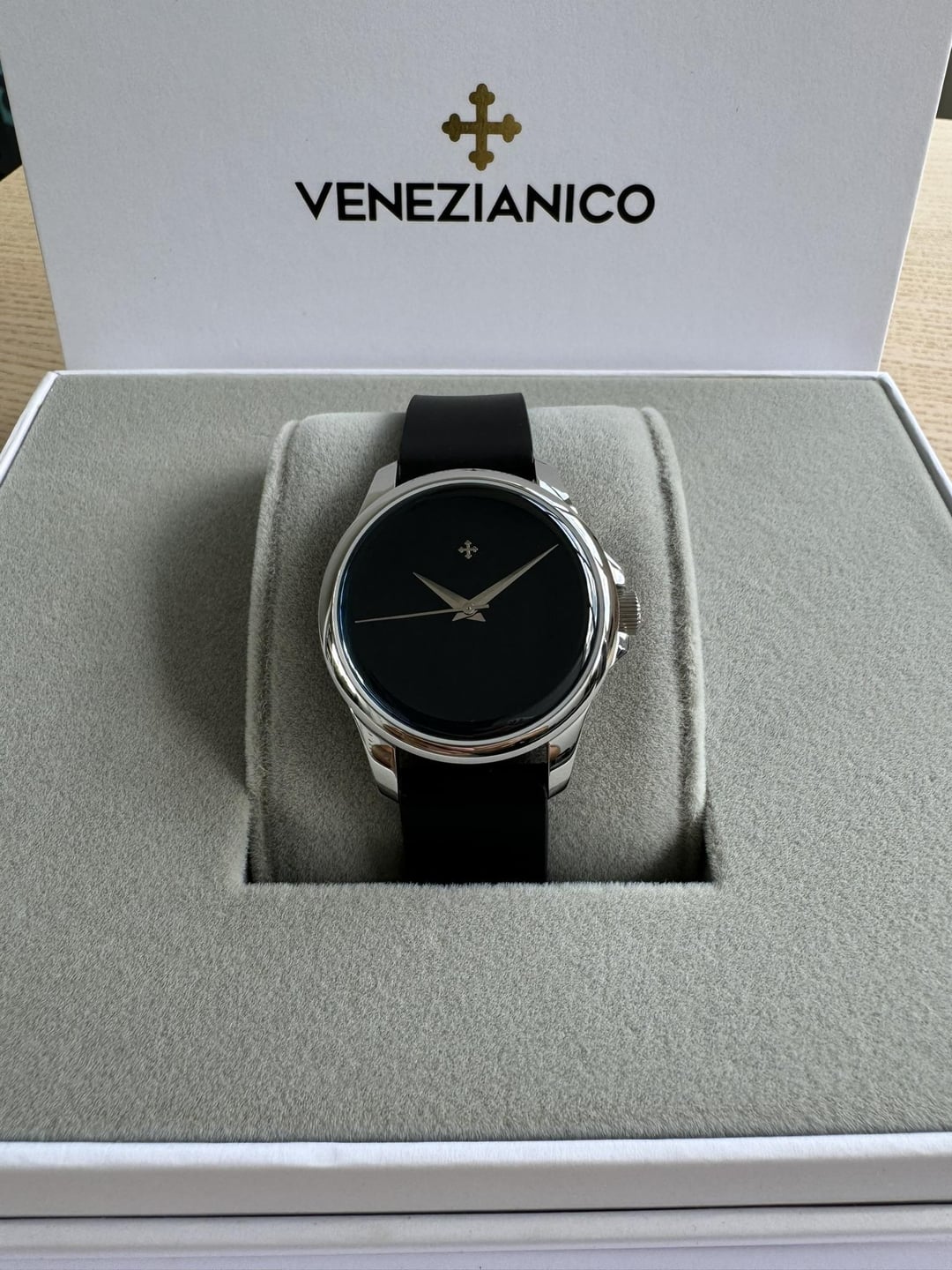 **OVERVIEW:** Up for sale is the Redentore UltraBlack in 36mm from the microbrand Venezianico. More on the watch [here](https://www.venezianico.com/products/redentore-ultrablack-1121510?srsltid=AfmBOoq4RWGeZPFVCHaZuGA9Jh7LImpb7QC4JC9vgNyNX4_7J_DqU-T6). **CONDITION:** Like new, with no scratches. Bough from another member of this platform and used once indoors (figured I’m more into sport watches). Any questions or specific photo(s) request, please feel free to reach out! **TAG / VIDEO:** Link [here](https://imgur.com/a/QmQbJDX). **DELIVERY:** Watch will come in a complete set (watch, box and papers). PRICE: $349, with shipping (USPS Priority Mail) on me. Lowest price on the internet, **guaranteed**. **NOTE:** Given the understandable apprehension that comes with buying and selling on this platform, will be willing to go the extra mile with: (i) multiple photos of watch and tag in multiple scenarios / settings, (ii) FaceTime the buyer or (iii) both. **DISCLAIMER:** Watch will be packed carefully with tons of bubble wrap and well protected. Final sale, no returns nor refunds. Once post office (USPS in this case) confirms item is in possession, I am no longer responsible for any issues that may arise during shipping.