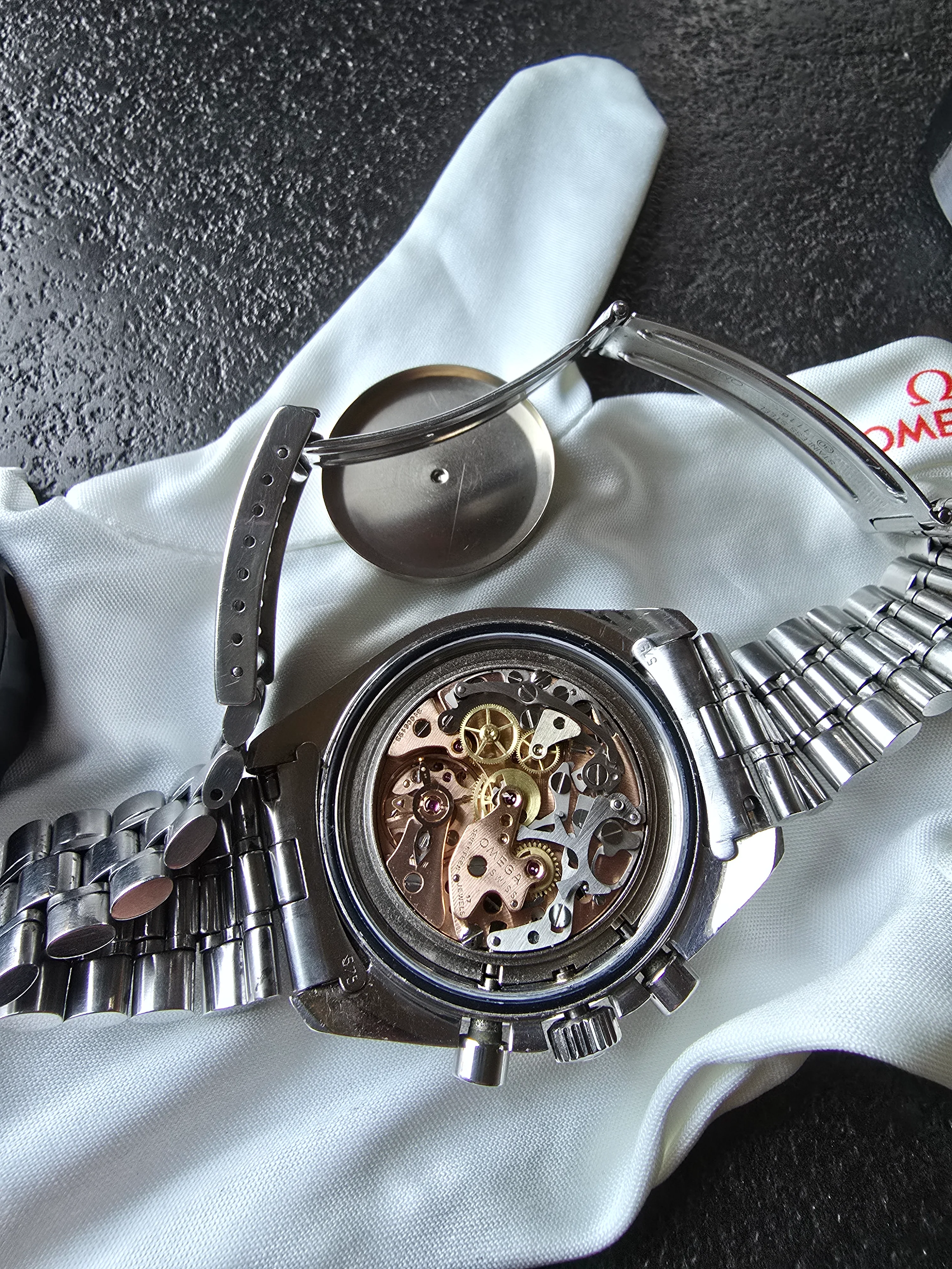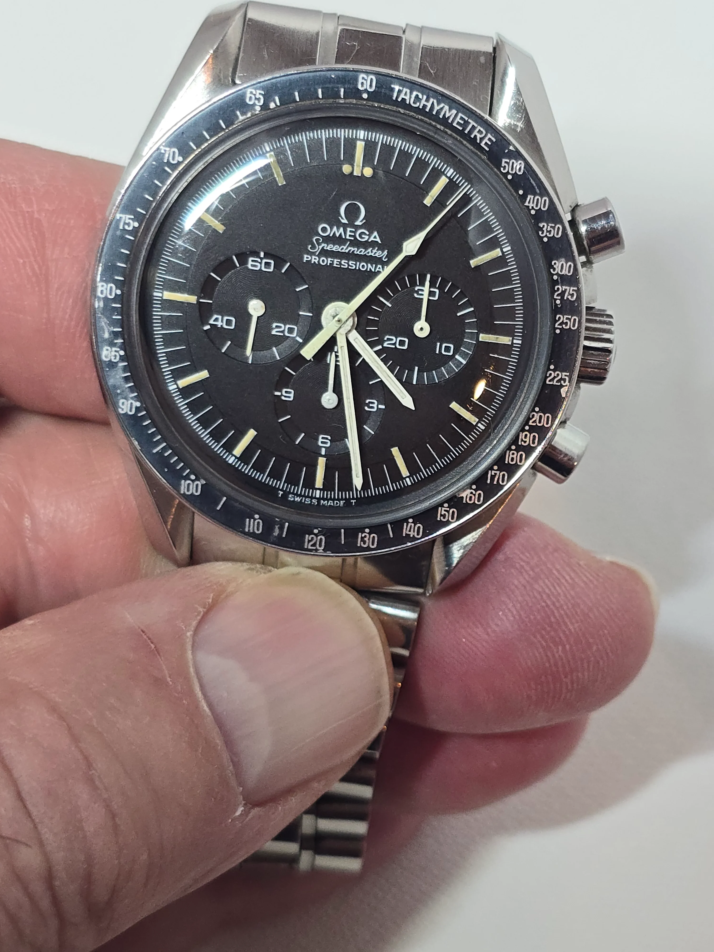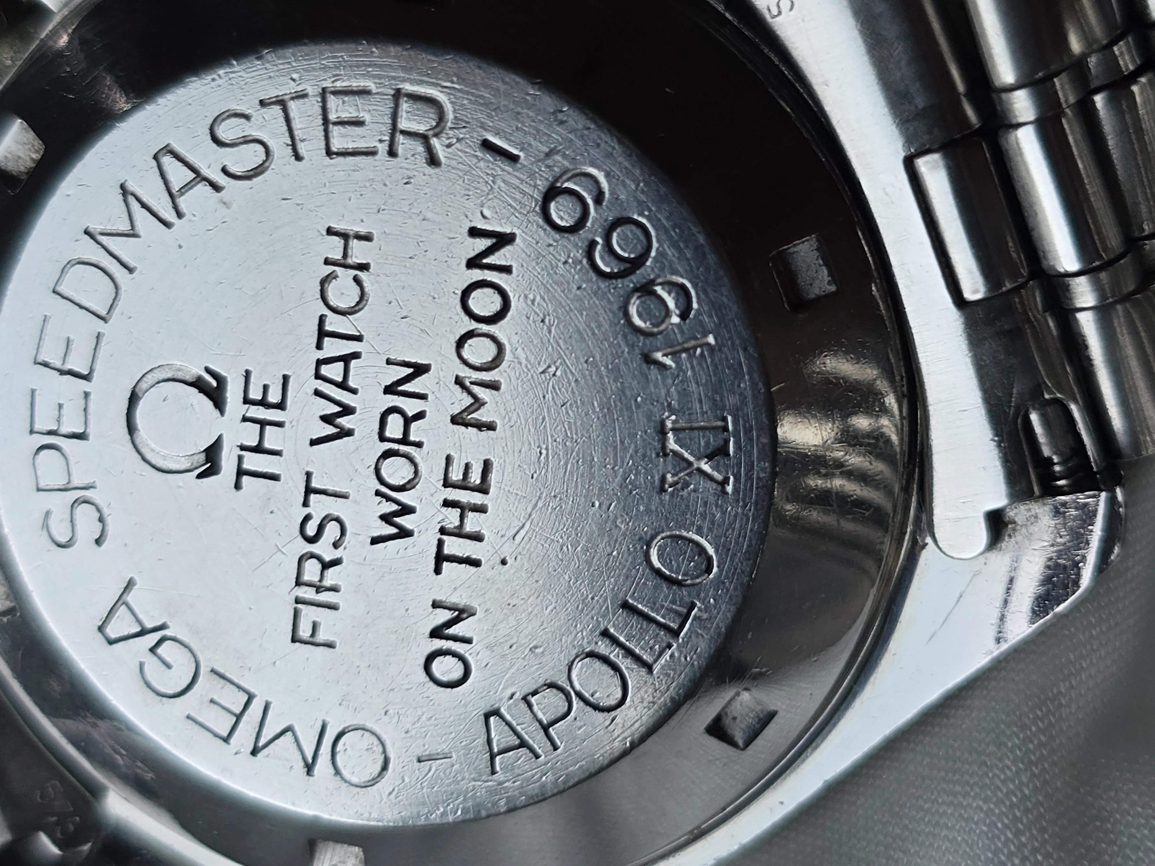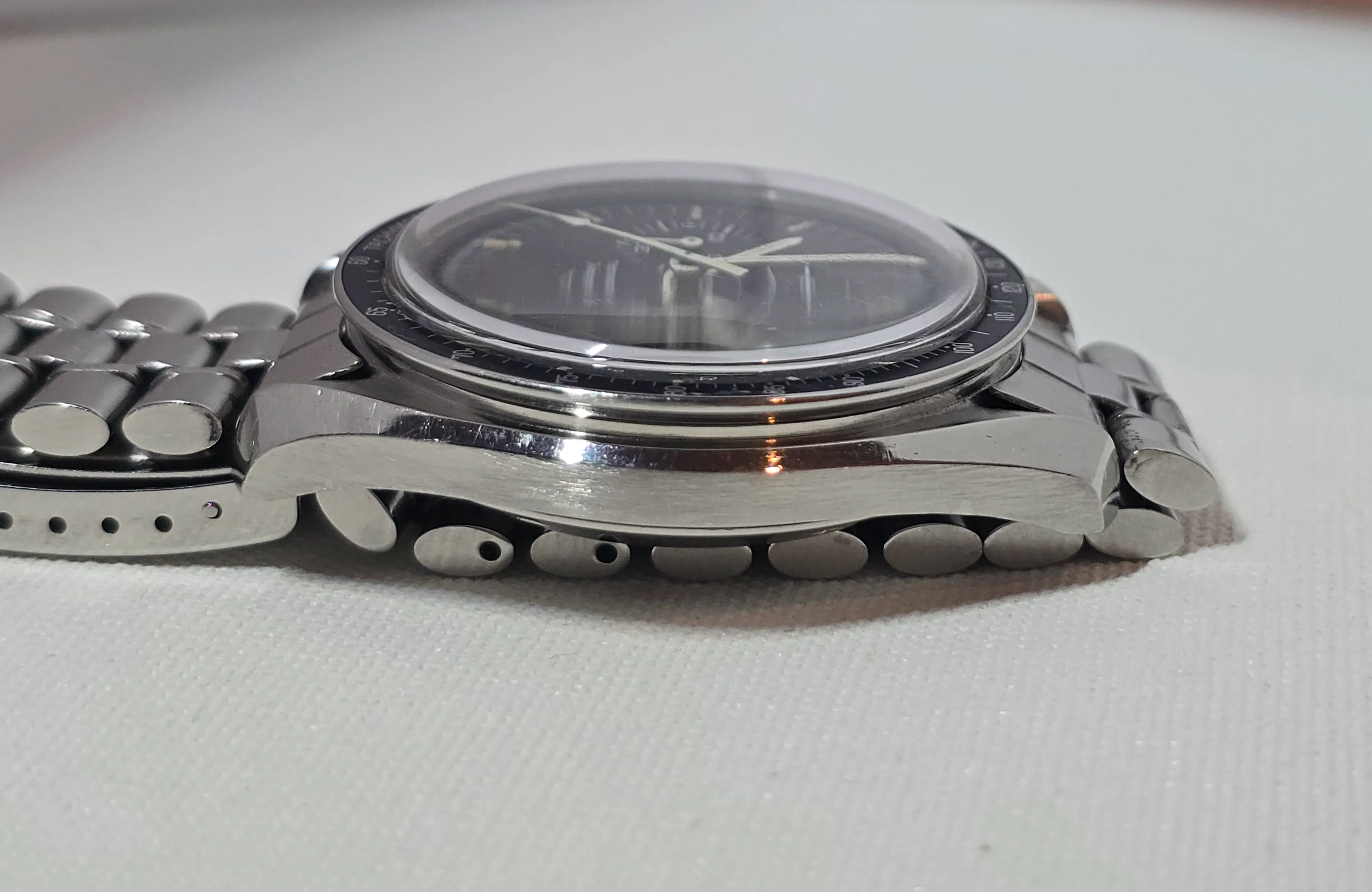 145.022-69 Speedmaster with straight writing Apollo XI caseback. Includes correct 1116 bracelet with endlinks. No accessories. Serviced Nov 2023.
