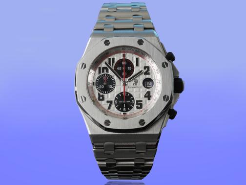 This specific Audemars Piguet, is known as the Panda, due to its white dial and black/red sundials.