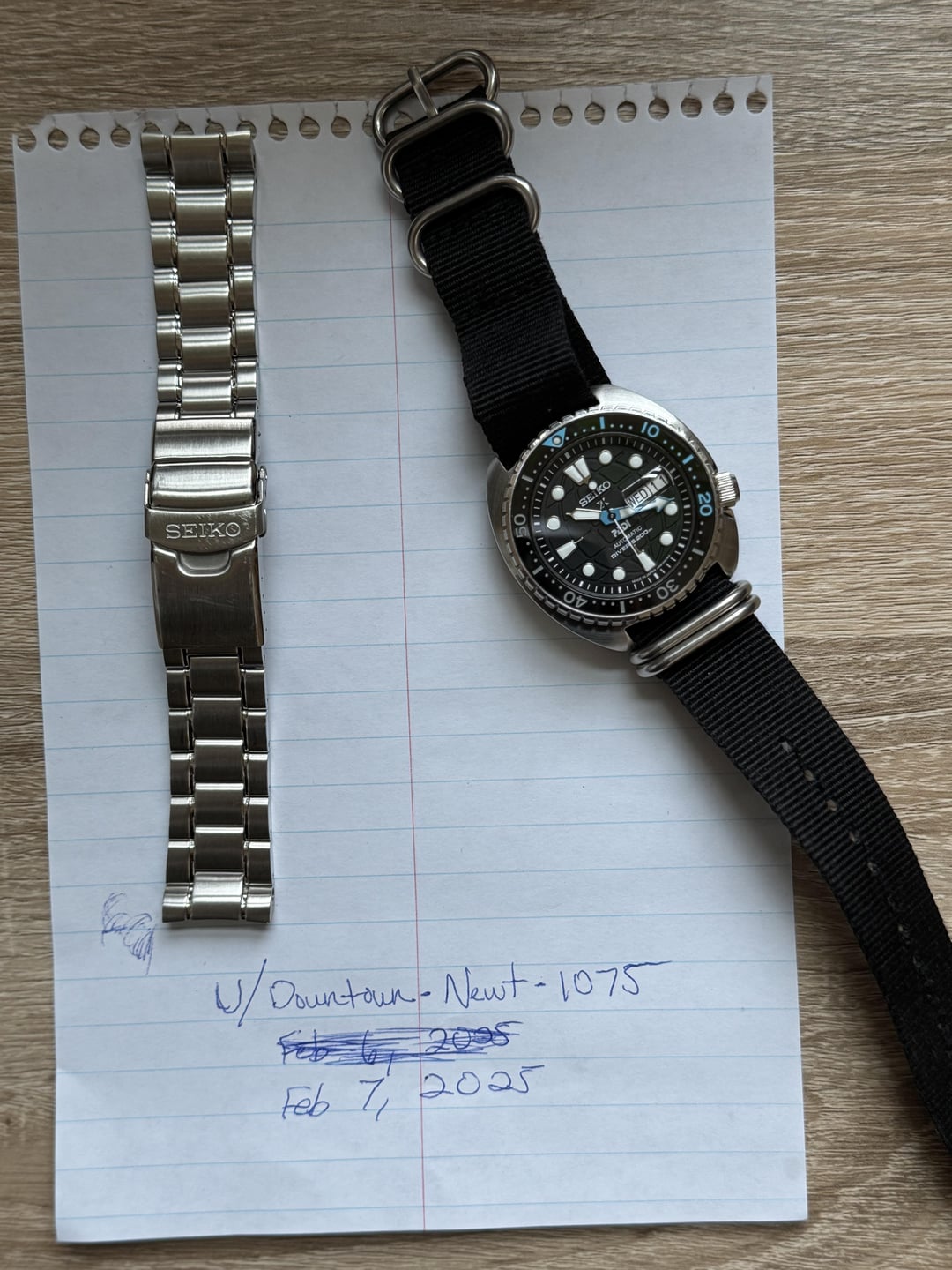 For sale is the Seiko Prospex King Turtle Padi Special Edition SRPG19 It is in great condition; there are little to no signs of wear on the case. A few barely noticeable hairline scratches. Selling for $250, including shipping from Pittsburgh, PA - Venmo or PayPal for payment - **OPEN TO NEGOTIATING PRICE**. Comes with original bracelet, which has signs of wear. One screw is needed to attach the bracelet in one piece. Fat boy spring bars are already on the watch with the nato. The bracelet does not affect price. Giving it away. Thanks for reading!