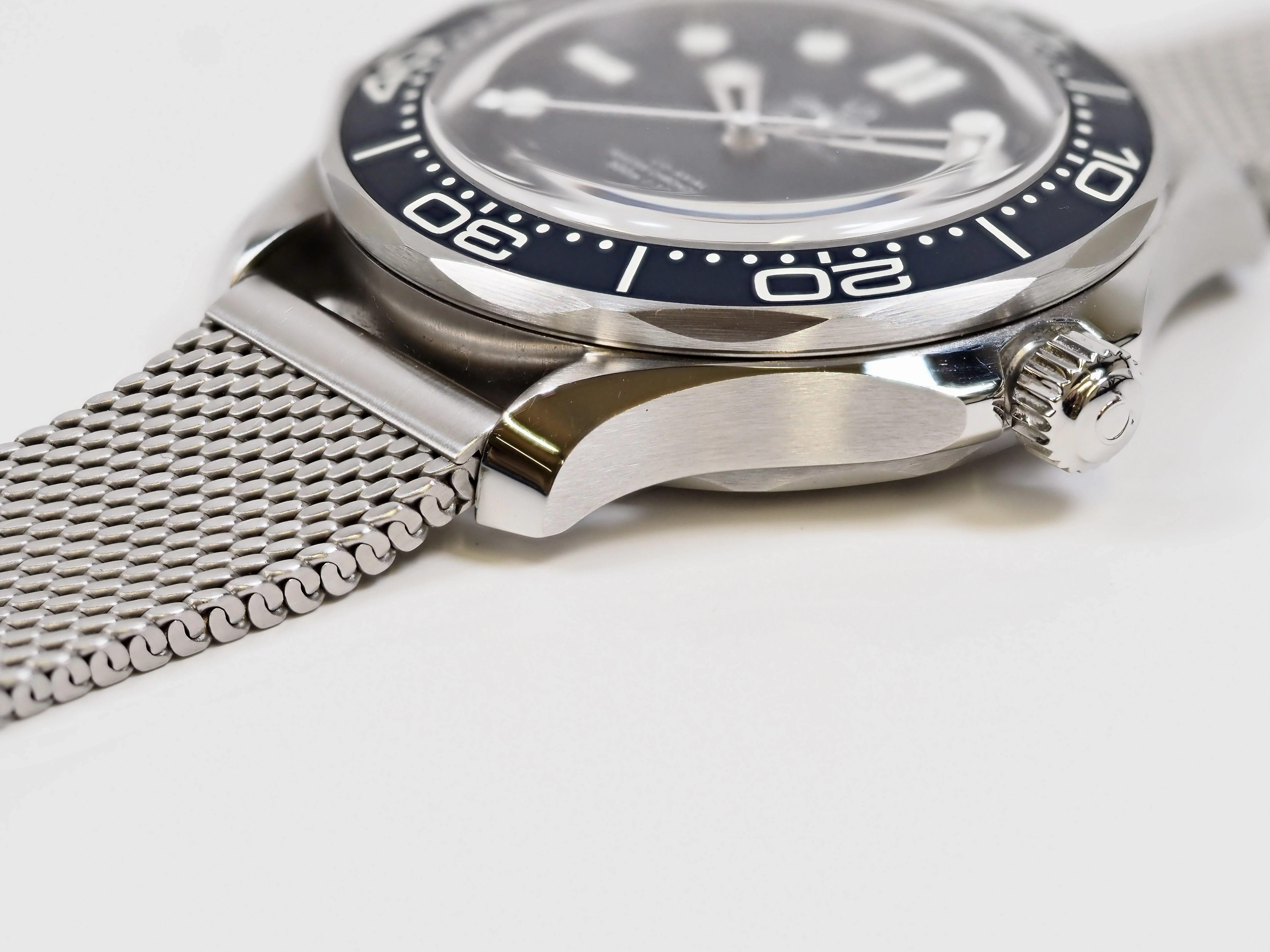 Dial: Blue oxalic anodised aluminium dial, with laser engraved waves, inspired by the Seamaster Diver 300M worn by James Bond in 1995’s GoldenEye