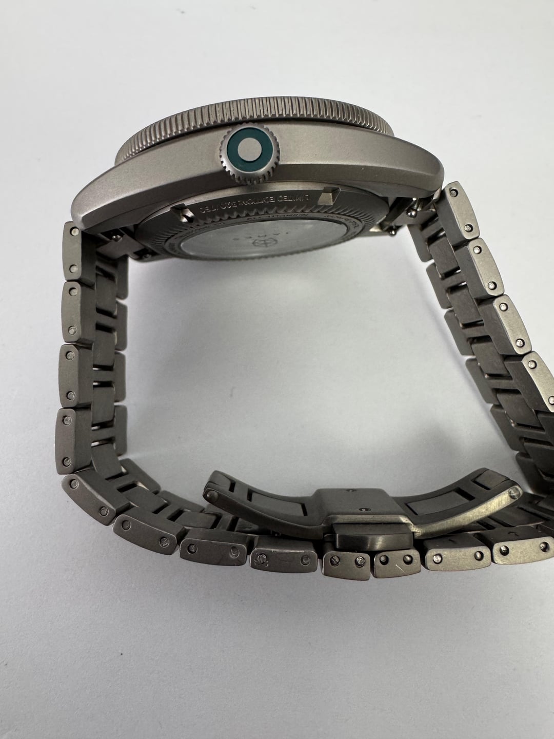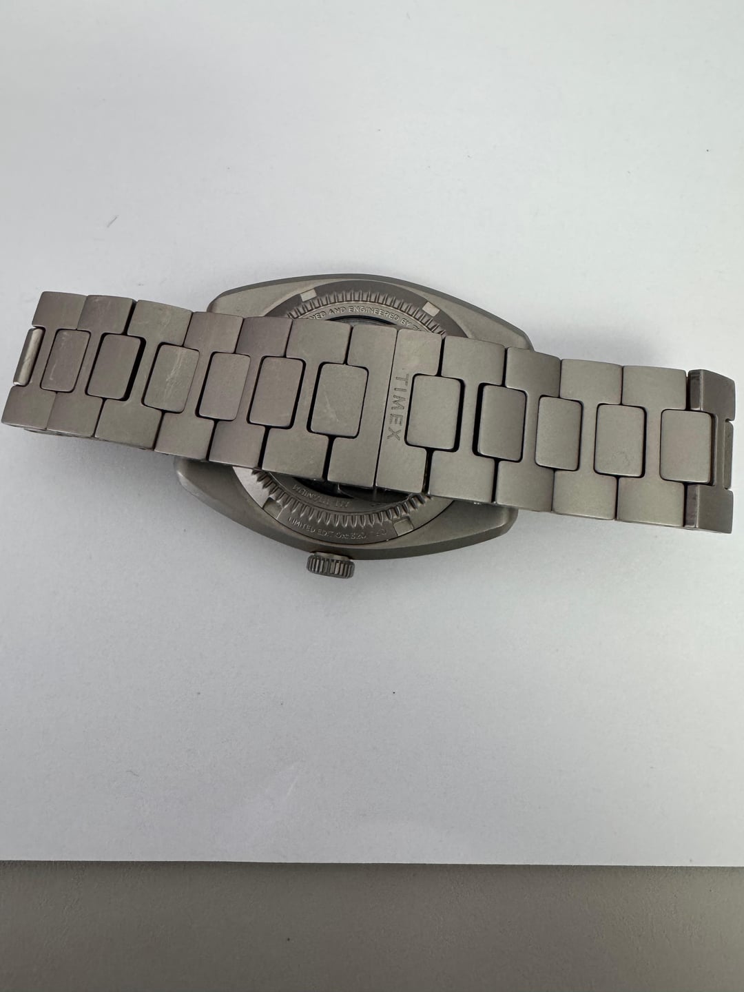 After purchasing another grail I've made the decision to thin the rest of my herd. Anyway up for sale is the recent release of the James Timex collaboration. This one is number 320/750 and I purchased it in November. I have sized this watch but have not actually worn it outside my house. Its light and great great looking. Inlcudes box papers, links, and rubber strap that came with watch. 700 firm. I paid 800 with taxes. Specs. Great looking thing. Movement Miyota 9075 automatic GMT BezelRotating Unidirectional Depth Rating 200 m Jewels 24 Case 6al-4v titanium Case Size41 mm Caseback Sapphire, exhibition window Crystal SAPPHIRE WITH ANTI-REFLECTIVE COATING Lume C3 Super-LumiNova® Titanium Bracelet 6al-4v titanium Bracelet Width 20 mm Buckles 6al-4v titanium Straps Included 2; titanium bracelet & perforated resin Strap type Quick release Crown Screw-down, with enamel in-fill Weight4.2 oz / 120 g Designed InPortland, Oregon Made In Japan