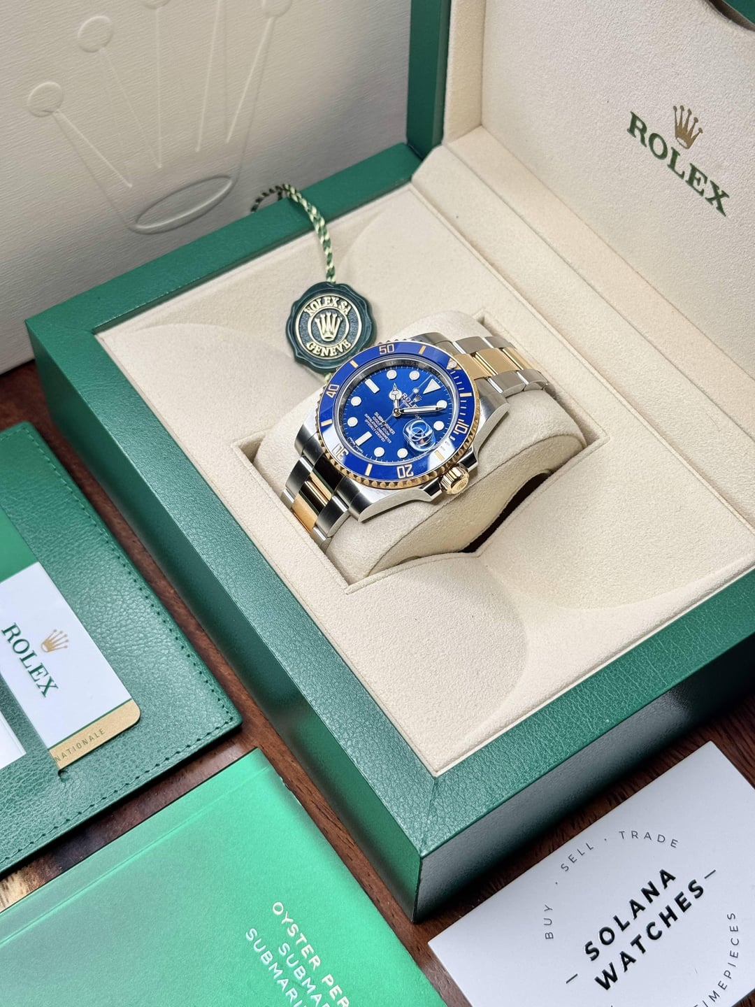 Selling this two-tone Rolex Submariner reference 116613LB / 116613 with the beautiful sunburst dial, also known as the Bluesy. It comes as a full set, including inner and outer boxes, manual, warranty booklet, leather wallet, warranty card dated 2019, and the Rolex hangtag. **This Bluesy is in good condition**. **Photos:** * [Album](https://imgur.com/a/2019-bluesy-feb2025-2-moUsFOJ) * [Timestamp](https://i.imgur.com/1Wa7cF0.jpeg) * [More on my Instagram @SolanaWatches](https://www.instagram.com/solanawatches/) **Price is $13,600** shipped in the CONUS. **I have completed many transactions here.** I am a full-time watch dealer, and can provide additional references upon request. **Feel free to contact me** via PM here so we can exchange numbers and get on the phone or do a video call. You can also [find me on Instagram @SolanaWatches](https://www.instagram.com/solanawatches/). _Private showroom located in San Diego, CA. Reach out to schedule an appointment._ _All my watches are guaranteed 100% authentic, and I will stand by their authenticity._ _California buyers without a seller’s permit are subject to sales tax._