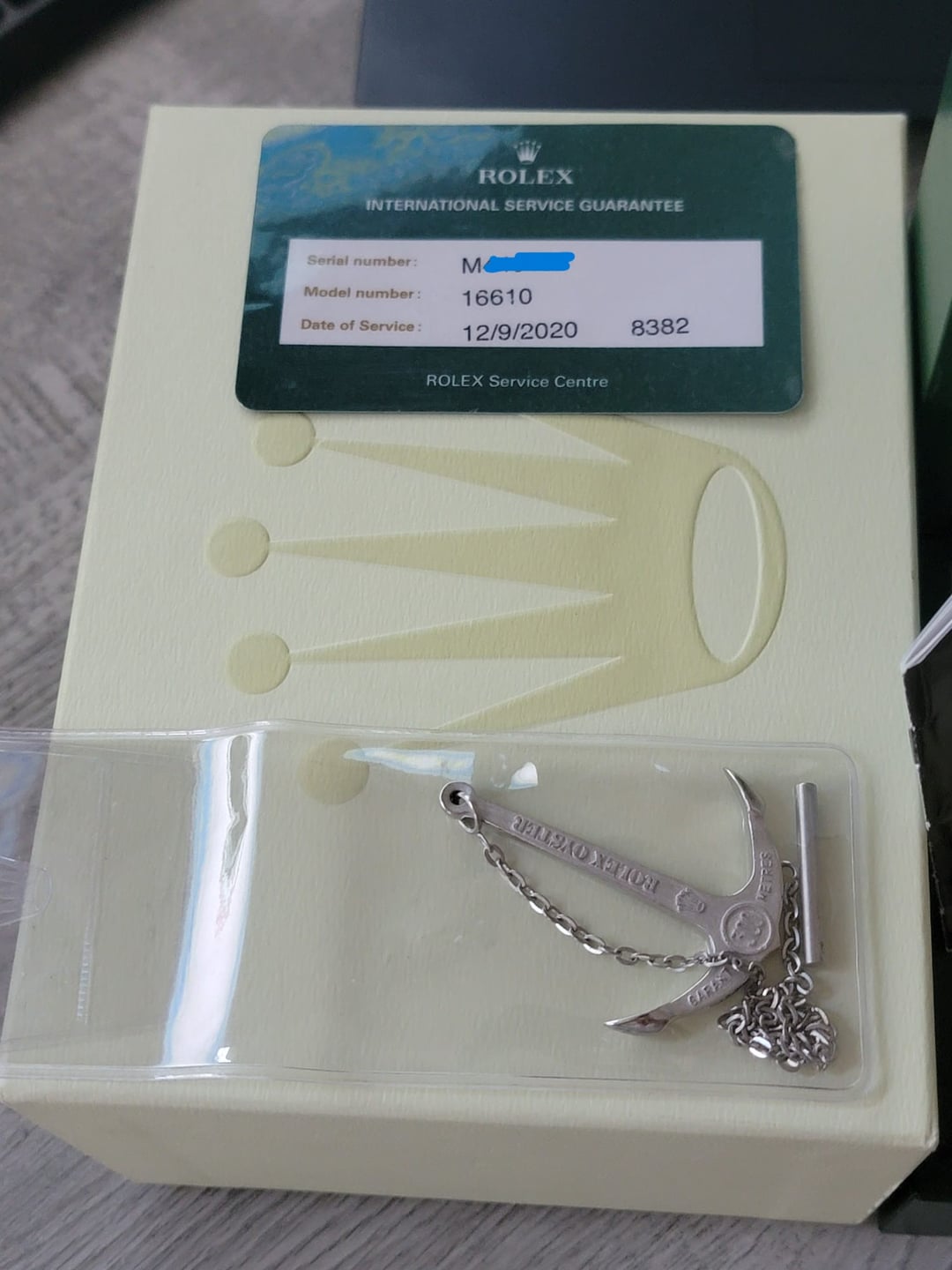2008 Rolex Kermit "M" Serial Ref: 16110LV The watch is in great shape with limited signs of wear. Comes fully complete with double box, booklets, hang tag and serial tag, rare rolex anchor pin, warranty card dated 1/28/2010, and also service card from rolex dated 12/9/2020. Running great on the timeographer and working as expected. Great kit here esp with the engraved rehaut limited production run! Price = $13,250 shipped Pics & Timestamp = [https://imgur.com/a/1MepsZC](https://imgur.com/a/1MepsZC) IG = watchfornia Cheers, Adam