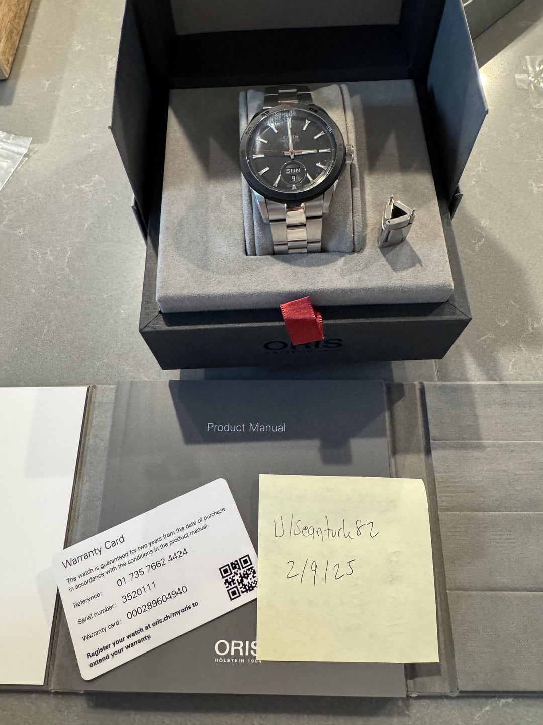 Hi Watchex If you love Oris like I do then you know about this watch. These days it is extremely rare to find a clean one in the market because these are discontinued models. However, I have your back :) Msrp: $2150 My Price: $790 shipped Conditon: Overall condition is excellent. Keeps time like it should, bezel and crystal spotless. Clasp and some links have light scratches in polished areas Includes: double box, manuals, warranty card and 3 extra links (full kit) 📍Plano, TX Specs: 42mm Caliber 735 - 38 HR PR 21mm lug width 12.1 Case thickness 100 meter WR