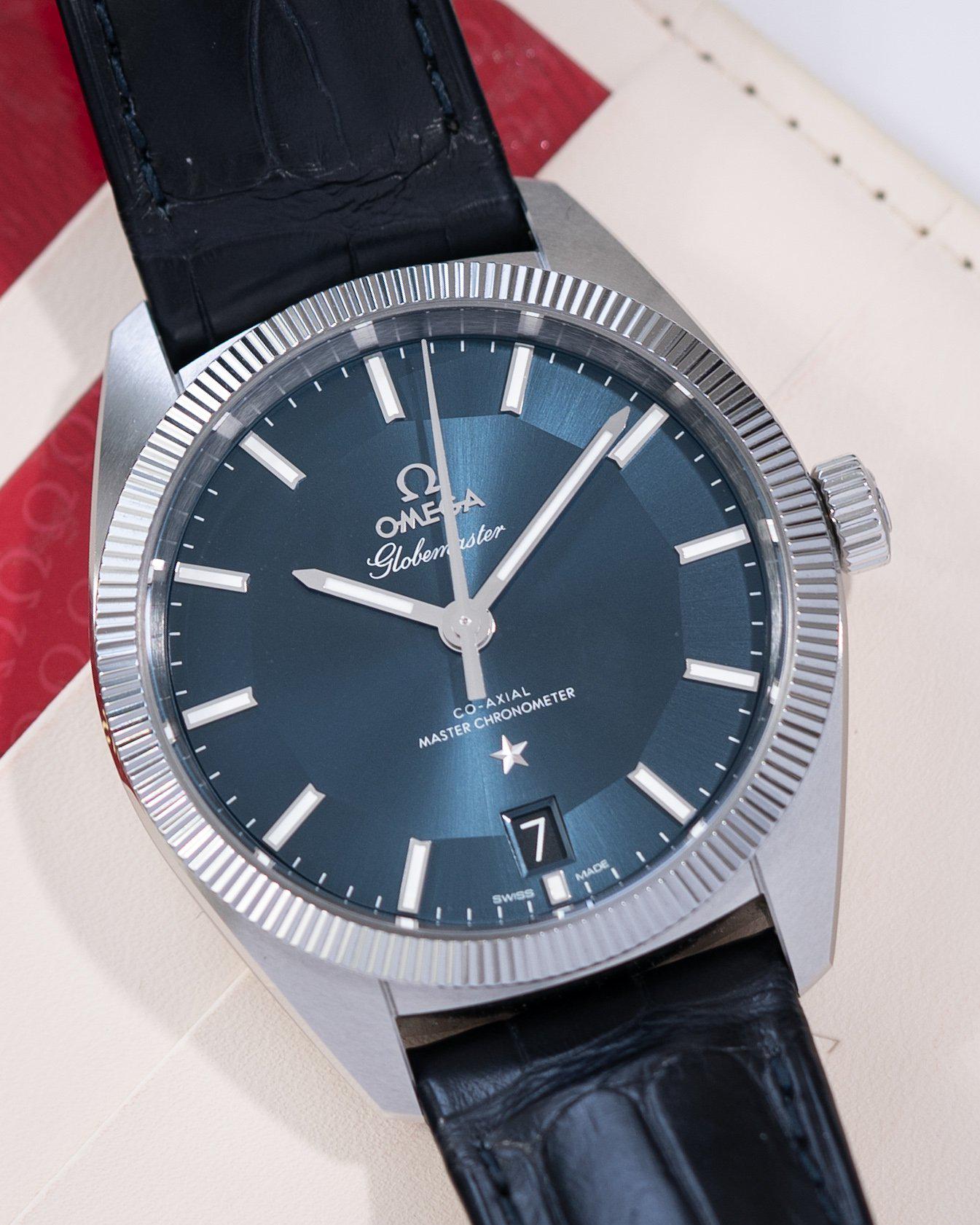 Up for sale is the Omega Globemaster in excellent pre-owned condition. This model at the time of its launch was the world's first Master Chronometer certified watch. This Omega features scratchproof fluted bezel made of tungsten, with a rhodium-plated Constellation star, and hands and indexes which have been filled with Super-LumiNova. The caseback includes a stainless steel Central Observatory medallion, while the sun-brushed blue "Pie Pan" dial is reminiscent of the first 1952 Constellation model. No issues with the watch. Everything works as it should. The sale is for the watch with cards only. No box or manual. **Priced to sell at $3,750 shipped in the US from Atlanta, GA.** **For trade inquiries, please send complete details of your trade offer outright.** **Timestamp and Pictures:** [**https://imgur.com/a/6YthKlv**](https://imgur.com/a/6YthKlv) Reference: 130.33.39.21.03.001 Case size: 39mm Lug width: 20 mm Lug‑to‑lug: 46.7 mm Case thickness: 12.6 mm Movement: Omega Caliber 8900 Power reserve: 60 hours