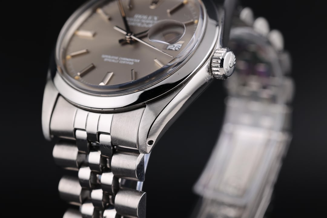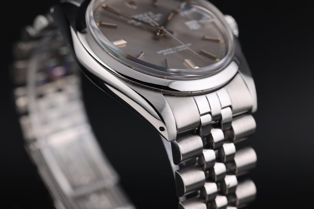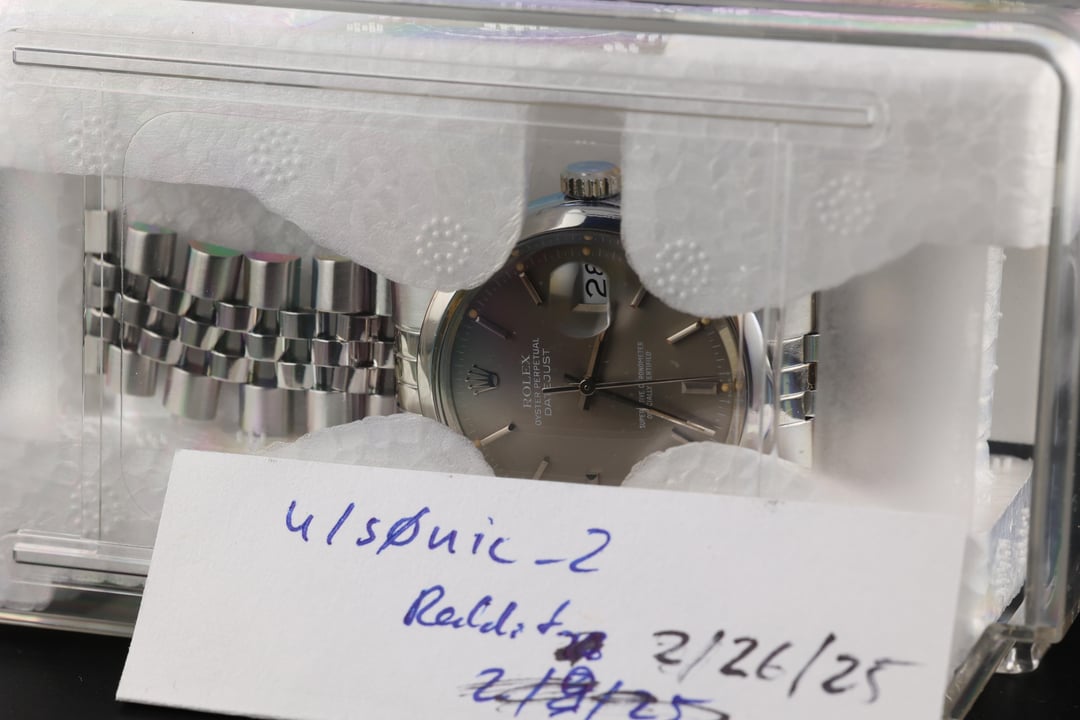 1983 Rolex Datejust 16000, often referred to as the "Gray Ghost" due to its subtle white text against the warm gray dial, giving it an almost spectral appearance in certain lighting. The dial is stunning, with a soft, even tone that plays beautifully with the light, complemented by gentle orange patina on the lume plots, all of which remain intact. Inside beats the Rolex Caliber 3035, a movement that introduced the quickset date function to the Datejust line, making date changes far more convenient than earlier models. Running at 28,800 vph, it delivers a smoother second hand sweep, and this example is performing strongly, with a healthy amplitude of over 260 degrees and excellent accuracy. The watch comes on a Jubilee bracelet, sizable to a 7.5-inch wrist. It has moderate stretch, which is typical for its age, but remains comfortable on the wrist. If desired, it can be re-pinned for an additional cost of $400. With its vintage charm, quickset functionality, and stunning gray dial, this Datejust is the perfect mix of vintage and modern, making it a fantastic daily wear piece or a great addition to any collection. Yours for $4900 via bank wire. Have references on WUS, Reddit, TRF, and 100% feedback on eBay. You can reach me via PM / [[email protected]](mailto:[email protected]). Follow me @ [www.timepiecetreasurebox.com](http://www.timepiecetreasurebox.com), on IG @ [timepiece_treasure_box](https://www.instagram.com/timepiece_treasure_box/), or on FB @ [Timepiece Treasure Box](https://www.facebook.com/profile.php?id=61566943652417). Thanks for looking.