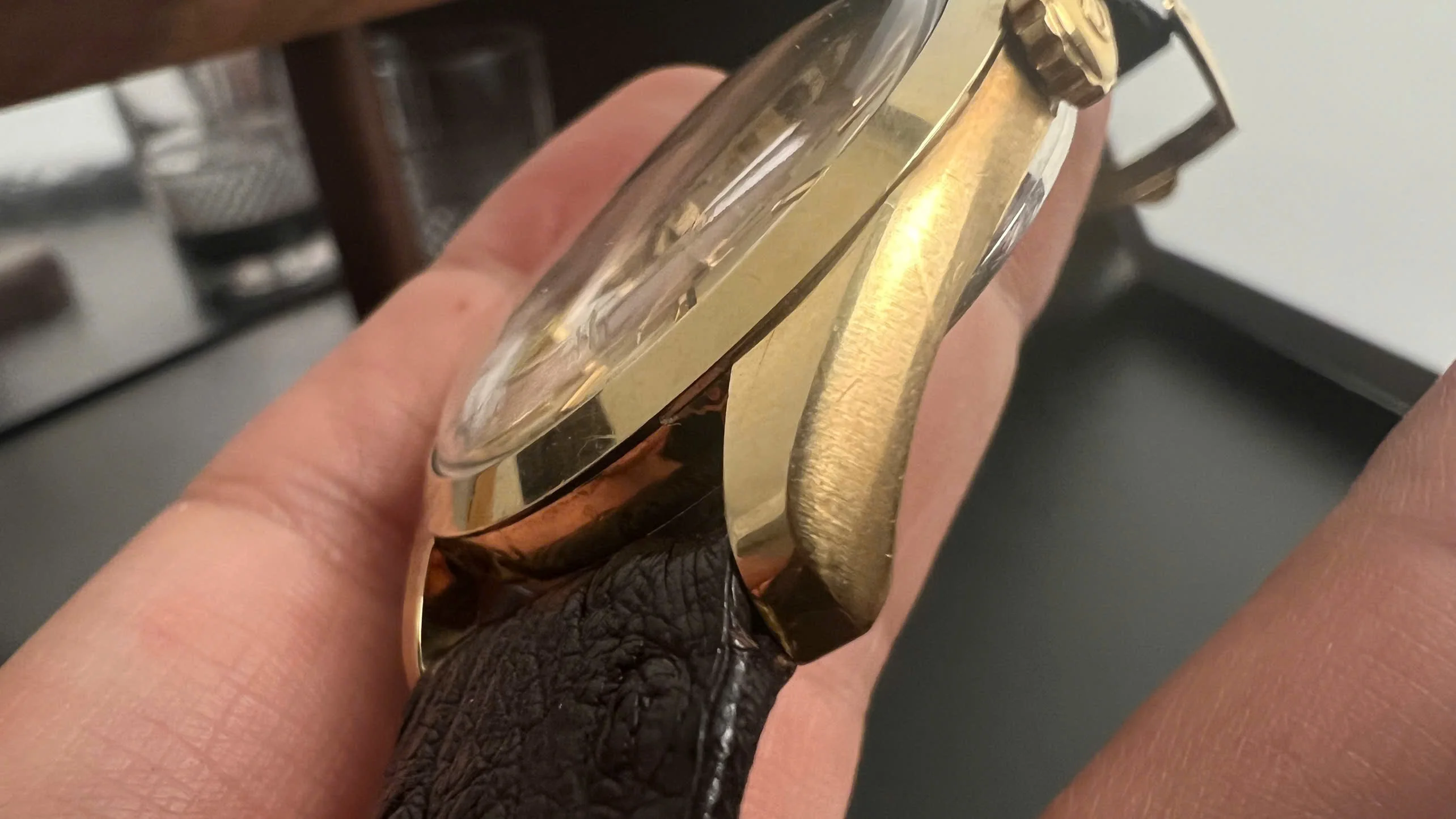 Case: Unpolished gold-capped case, showcasing well-preserved details.